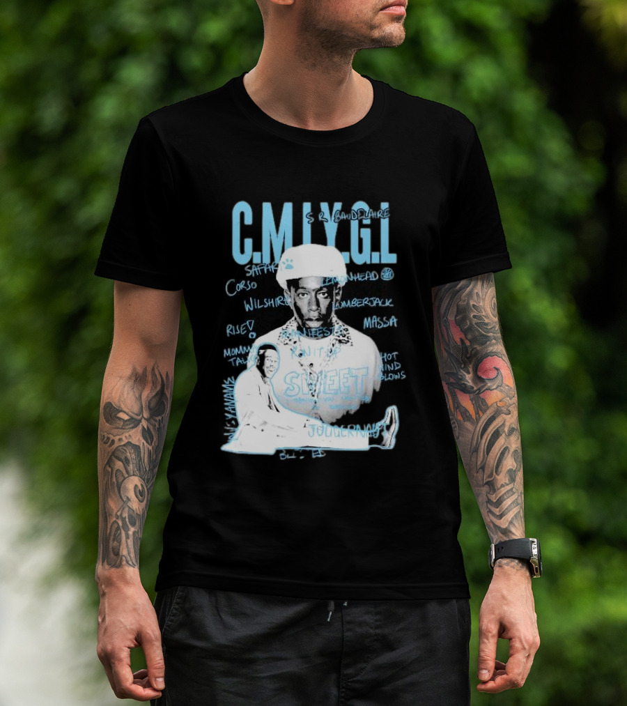The C.M.I.Y.G.L. Tyler Call Me if You Get Lost Sweet Journey S.R. Baudelaire Portrait Saffron Lemonhead Corso Wilshire Lumberjack Massa T-shirt is designed for everyday wear and a consistent fit. Fabric is pre-shrunk ring-spun cotton with durable stitching. See the size chart below for exact measurements.