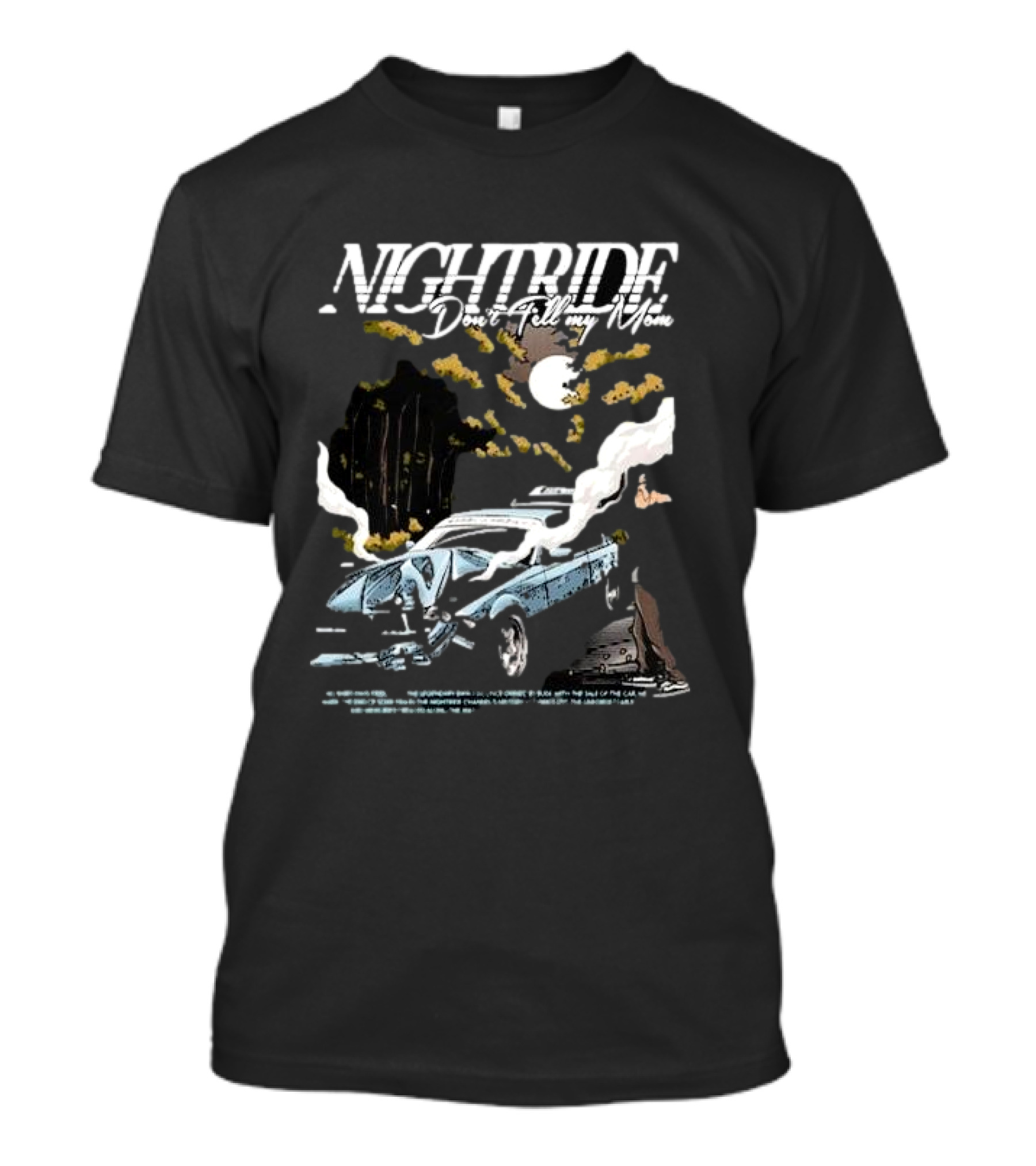 The Nightride Don't Tell My Mom Retro Car Smoky Night Scene T-shirt is designed for everyday wear and a consistent fit. Fabric is pre-shrunk ring-spun cotton with durable stitching. See the size chart below for exact measurements.