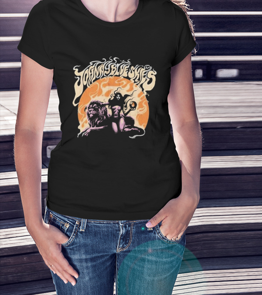 The Johnny Blue Skies Sorceress with Lion Orange Background T-shirt is designed for everyday wear and a consistent fit. Fabric is pre-shrunk ring-spun cotton with durable stitching. See the size chart below for exact measurements.