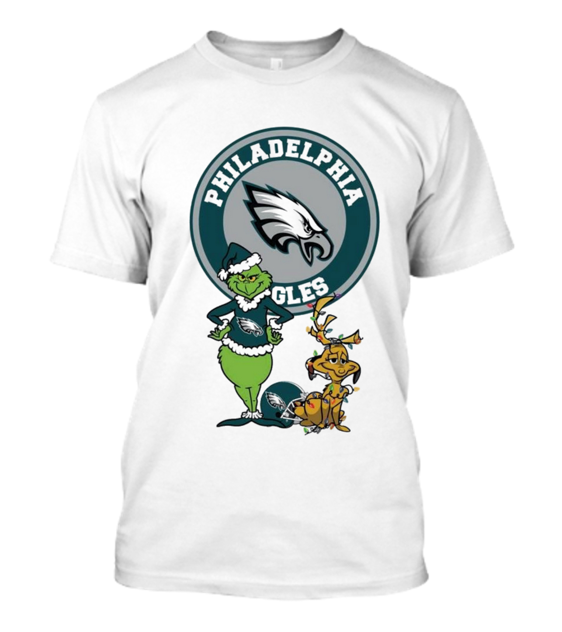 The Grinch Max Philadelphia Eagles Merry Christmas T-shirt is designed for everyday wear and a consistent fit. Fabric is pre-shrunk ring-spun cotton with durable stitching. See the size chart below for exact measurements.
