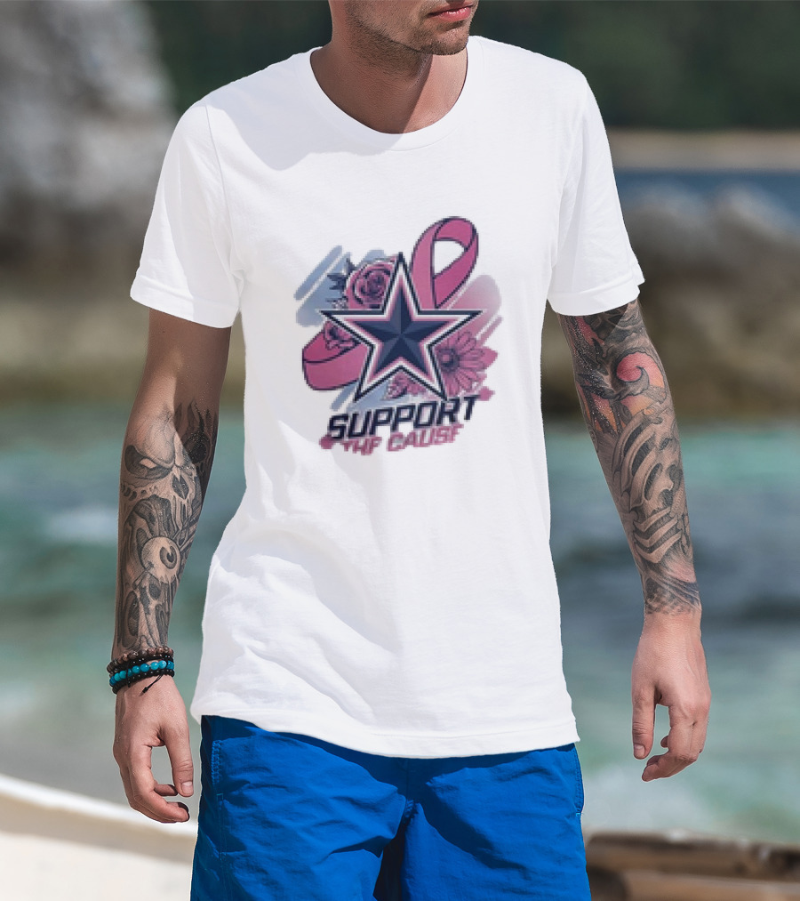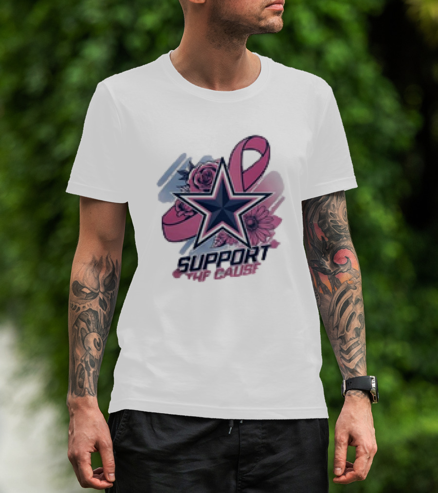 Support The Cause Breast Cancer Awareness X Dallas Cowboys Star Pink Ribbon Roses T-Shirt