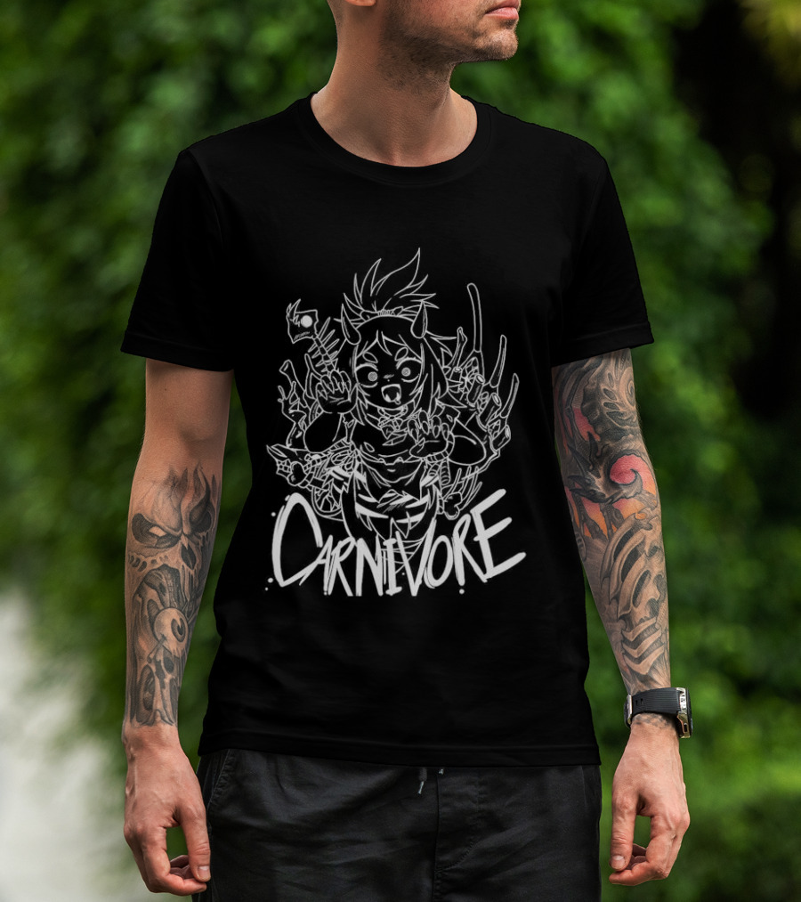 The Carnivore Nocturnal Fantasy Creature with Meat Elements T-shirt is designed for everyday wear and a consistent fit. Fabric is pre-shrunk ring-spun cotton with durable stitching. See the size chart below for exact measurements.