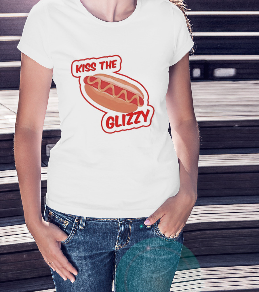 Kiss The Glizzy Hot Dog Bold Text With Mustard And Ketchup T-Shirt