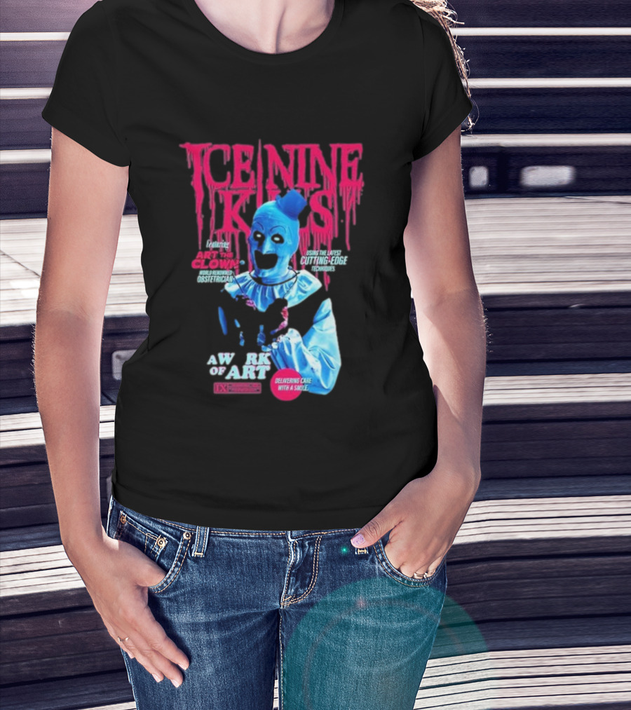Rock Abilia Ice Nine Kills Black Featuring Art The Clown Cutting Edge Delivering Cake With A Smile T-Shirt