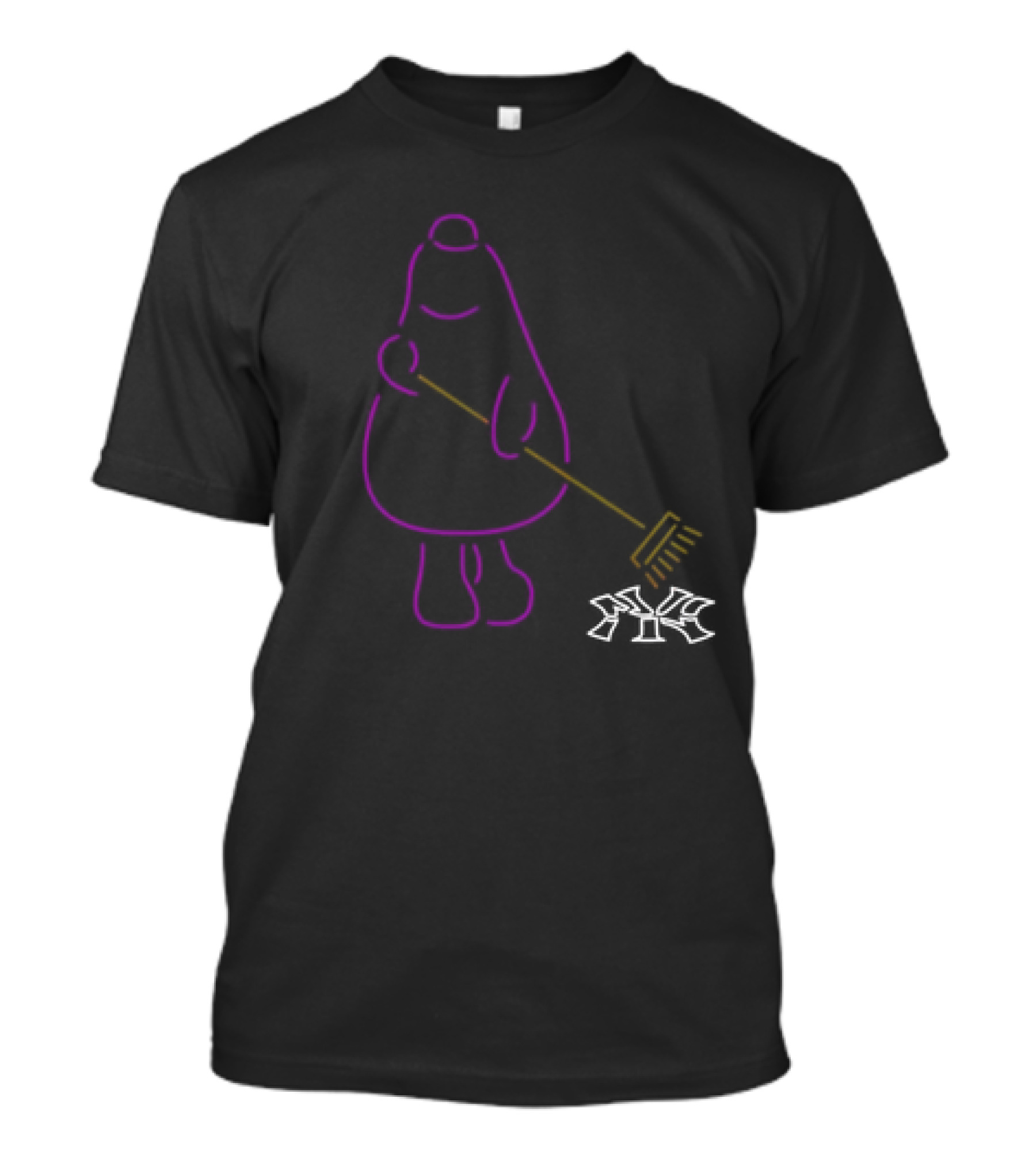 The Grimace Purple Neon Mascot with Broom New York Yankees Logo LFGM T-shirt is designed for everyday wear and a consistent fit. Fabric is pre-shrunk ring-spun cotton with durable stitching. See the size chart below for exact measurements.