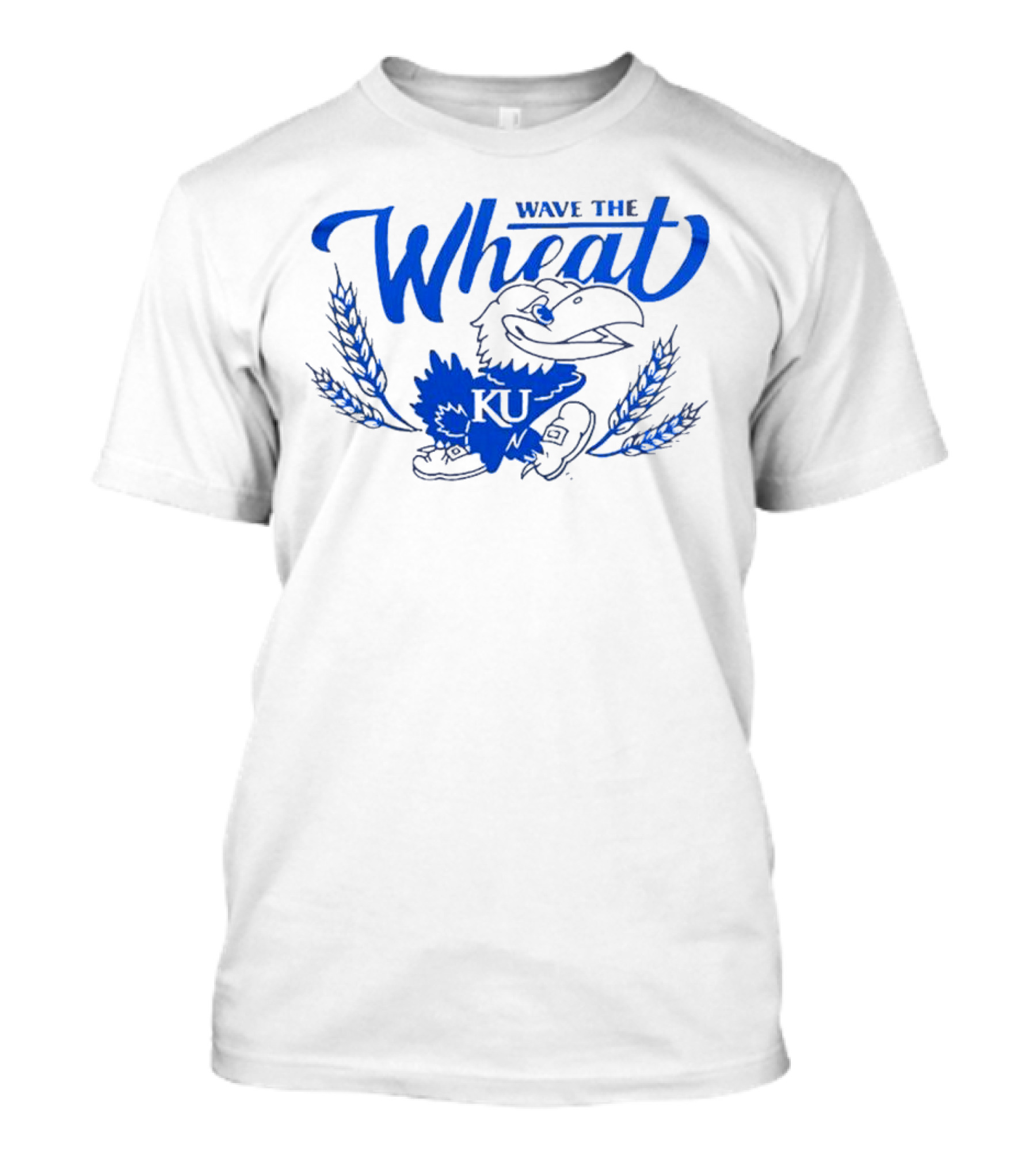 Kansas Jayhawks KU Wave The Wheat With Mascot And Wheat Stalks T-Shirt