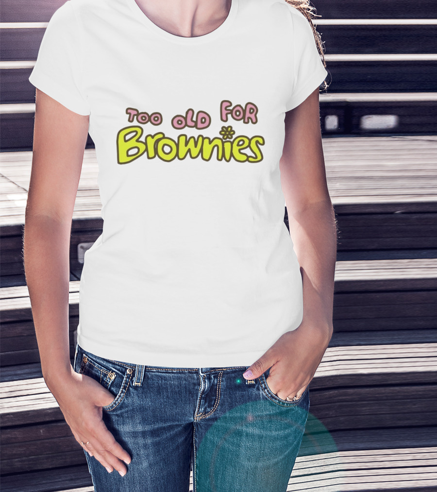 The Too Old for Brownies Retro Flower T-shirt is designed for everyday wear and a consistent fit. Fabric is pre-shrunk ring-spun cotton with durable stitching. See the size chart below for exact measurements.
