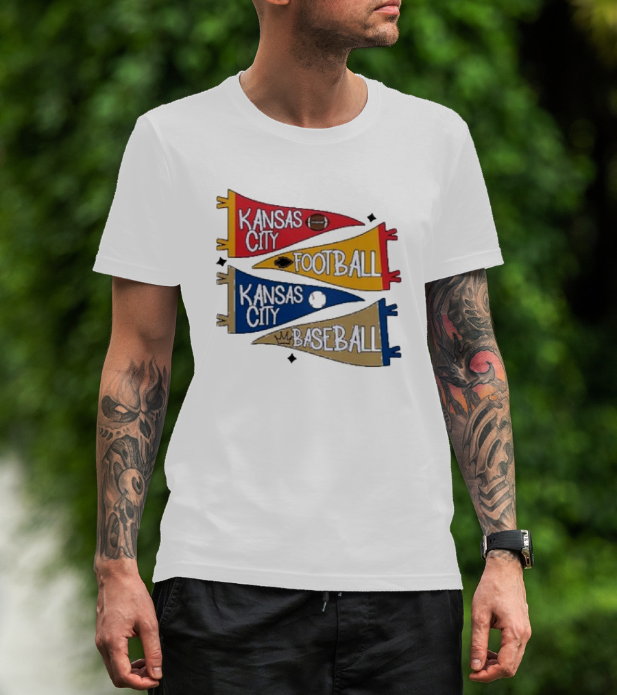 Kansas City Football And Baseball Pennants With Iconic Team Colors And Symbols T-Shirt