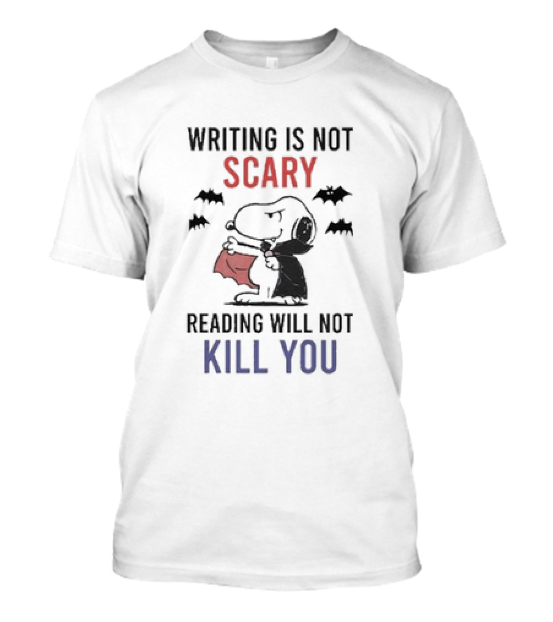 Peanuts Snoopy Dracula Writing Is Not Scary Reading Will Not Kill You T-Shirt
