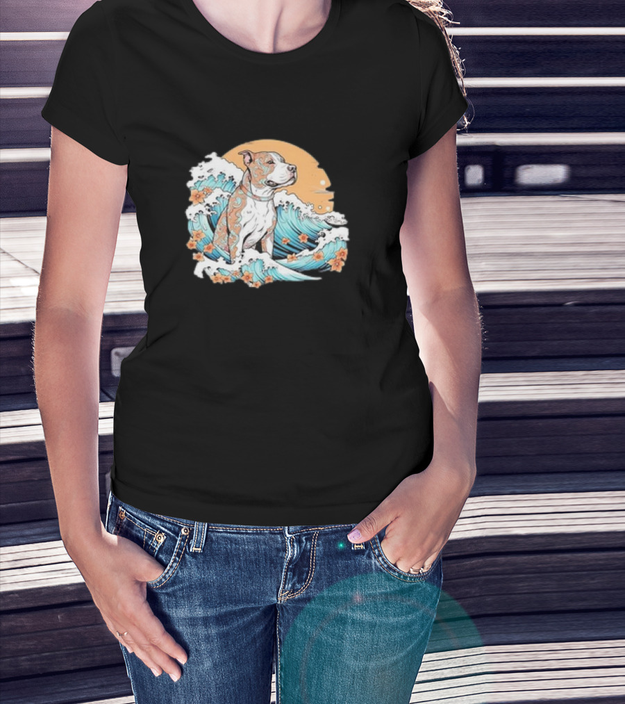 Summer Retro Pitbull Mom Dog Mama Beach Vibes Dog Wave T-Shirt