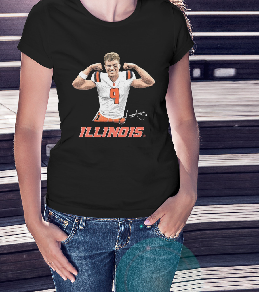 Illinois Fighting Illini Luke Altmyer Flexing With Signature And Number 9 T-Shirt