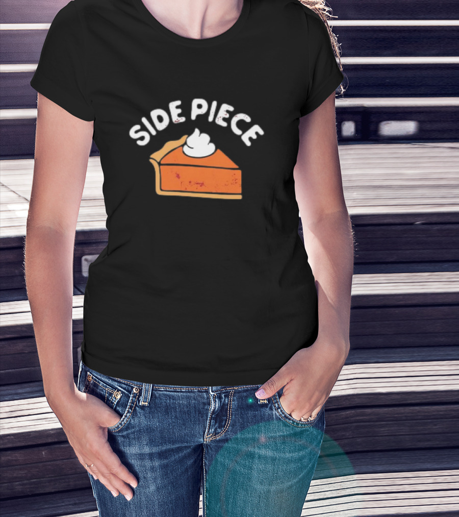 The Side Piece Thanksgiving Pumpkin Pie Slice Whipped Cream Humor T-shirt is designed for everyday wear and a consistent fit. Fabric is pre-shrunk ring-spun cotton with durable stitching. See the size chart below for exact measurements.
