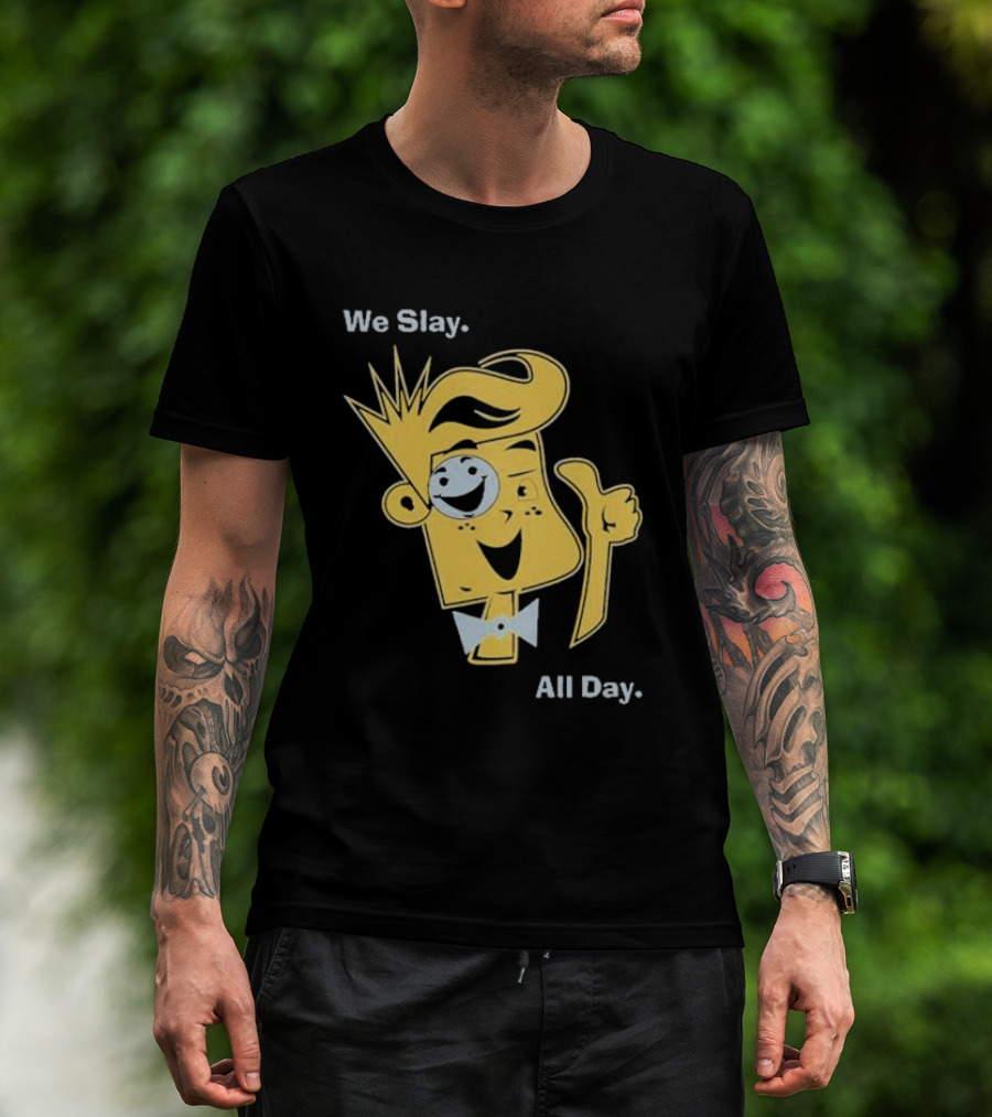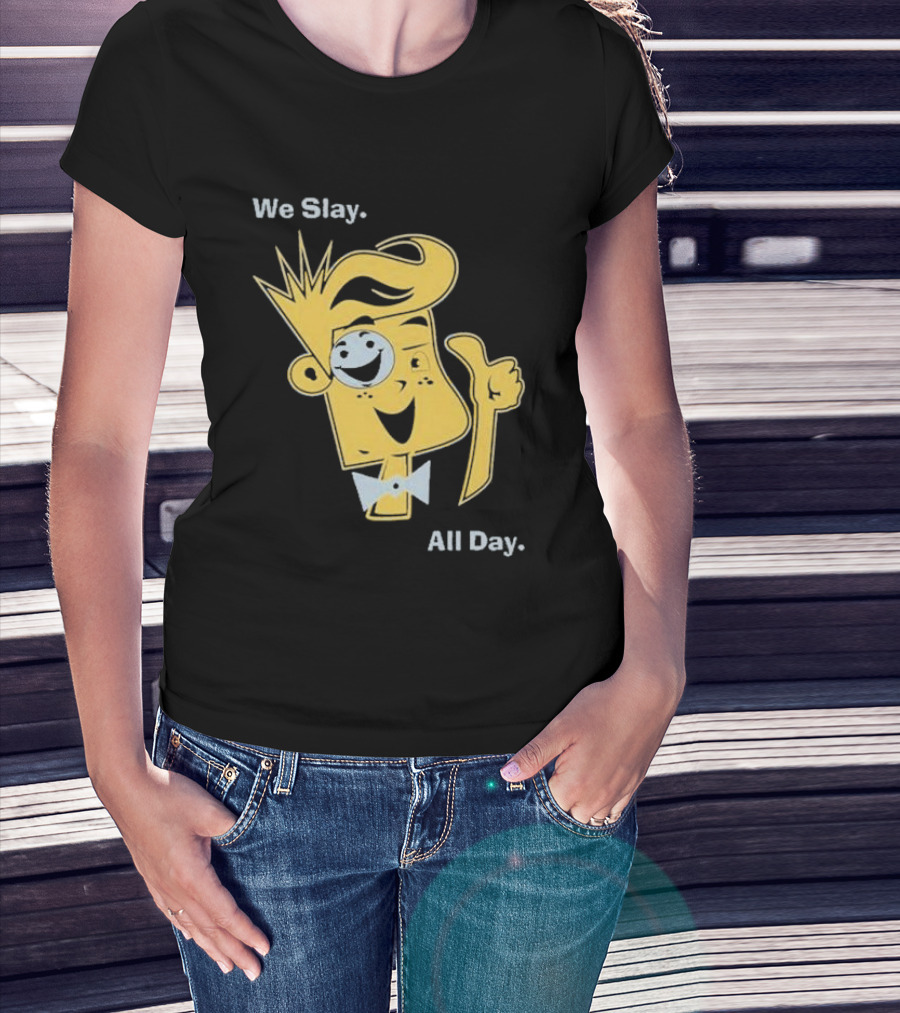We Slay All Day Fgteev Shiny Yellow Character With Smile And Bow Tie T-Shirt