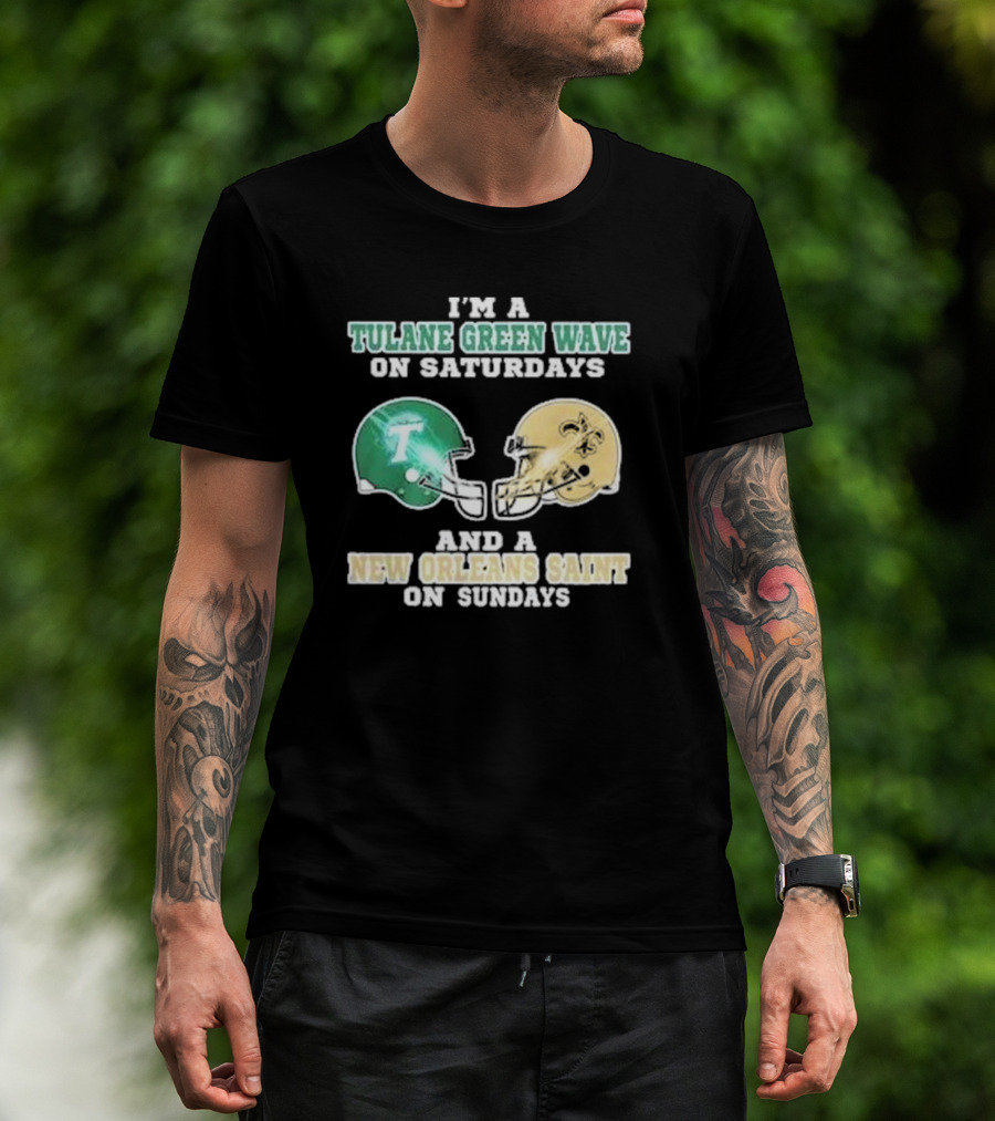 I’m A Tulane Green Wave On Saturdays And A New Orleans Saint On Sundays Football Helmets T-Shirt