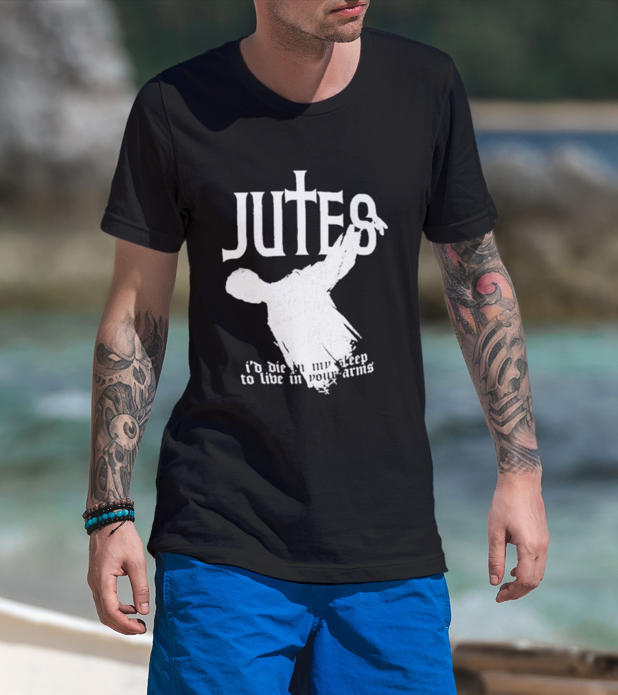 The Jutes Sleepyhead I'd Die In My Sleep To Live In Your Arms Cross T-shirt is designed for everyday wear and a consistent fit. Fabric is pre-shrunk ring-spun cotton with durable stitching. See the size chart below for exact measurements.