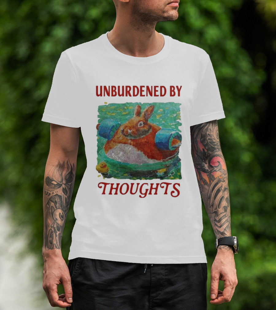 UNBURDENED BY THOUGHTS Rabbit Floating With Tube In Water Scene T-Shirt
