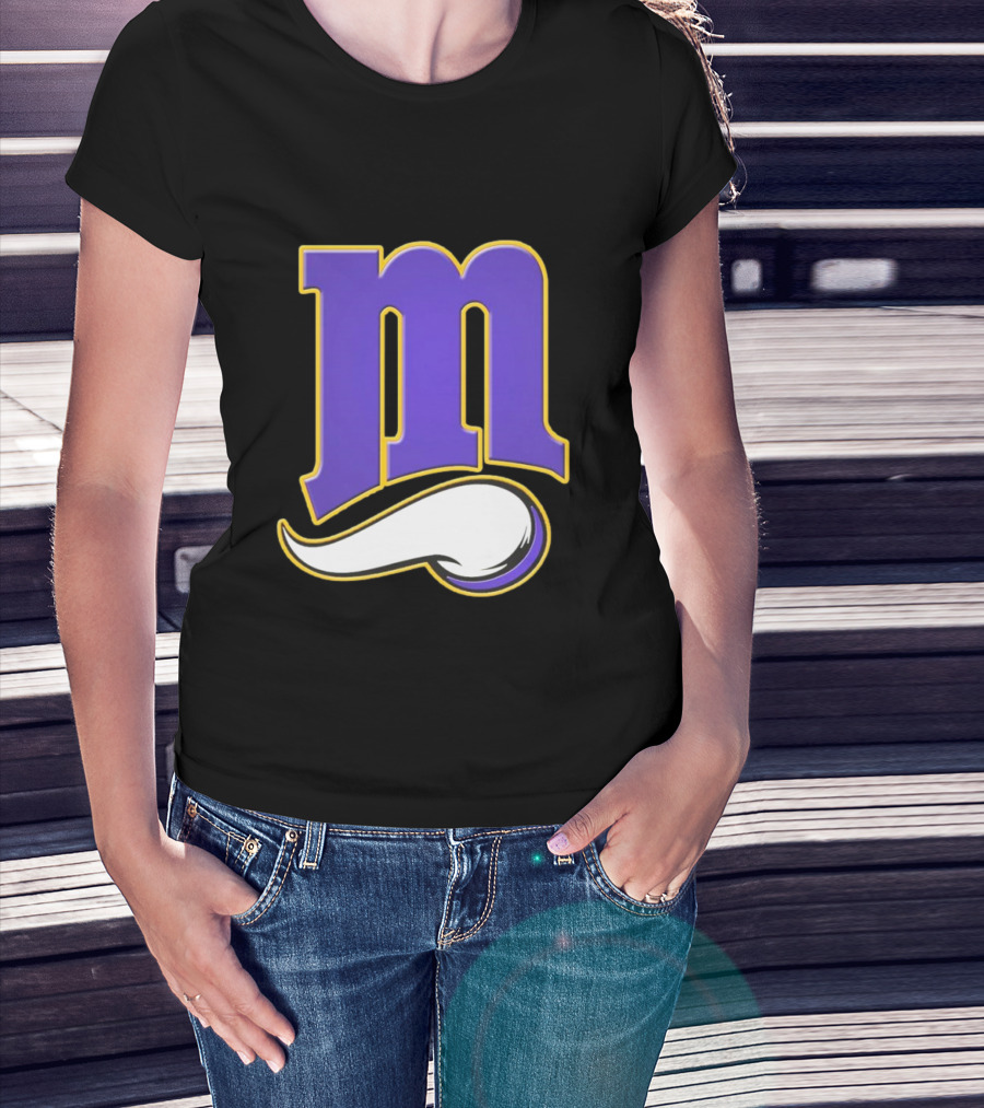 Minnesota Vikings And Minnesota Twins M Logo Fusion In Purple And White T-Shirt
