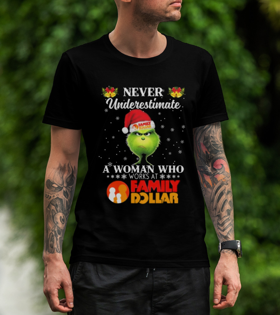 Never Underestimate A Woman Who Works At Family Dollar Grinch Christmas T-Shirt