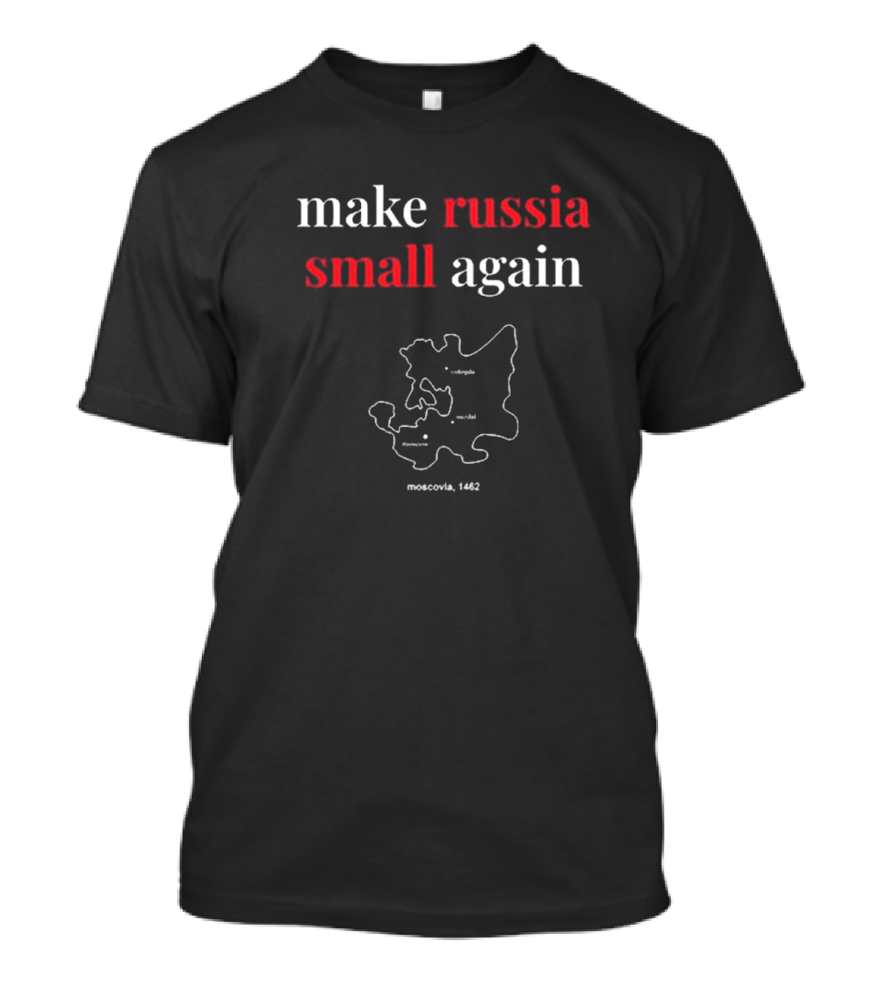 How much will this Make Russia Small Again Moscovia 1462 Map Outline with Cities shirt shrink?