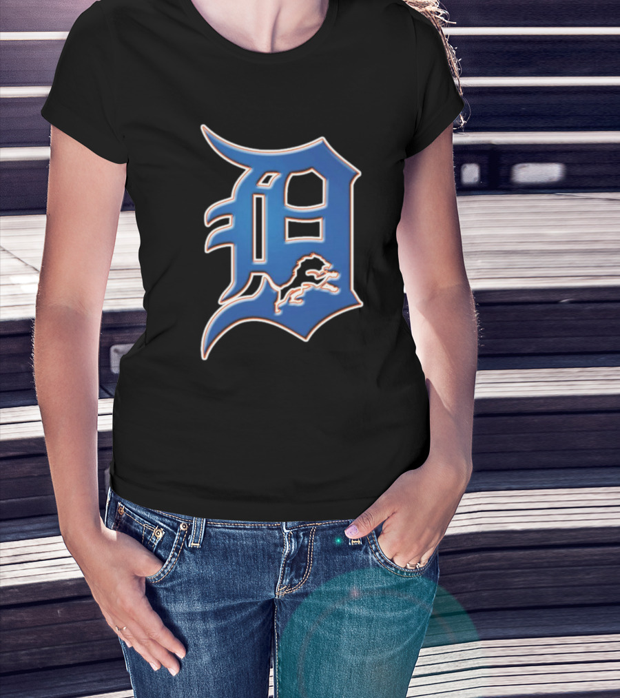 Detroit Lions Tigers Logo Mashup NFL MLB Blue D T-Shirt
