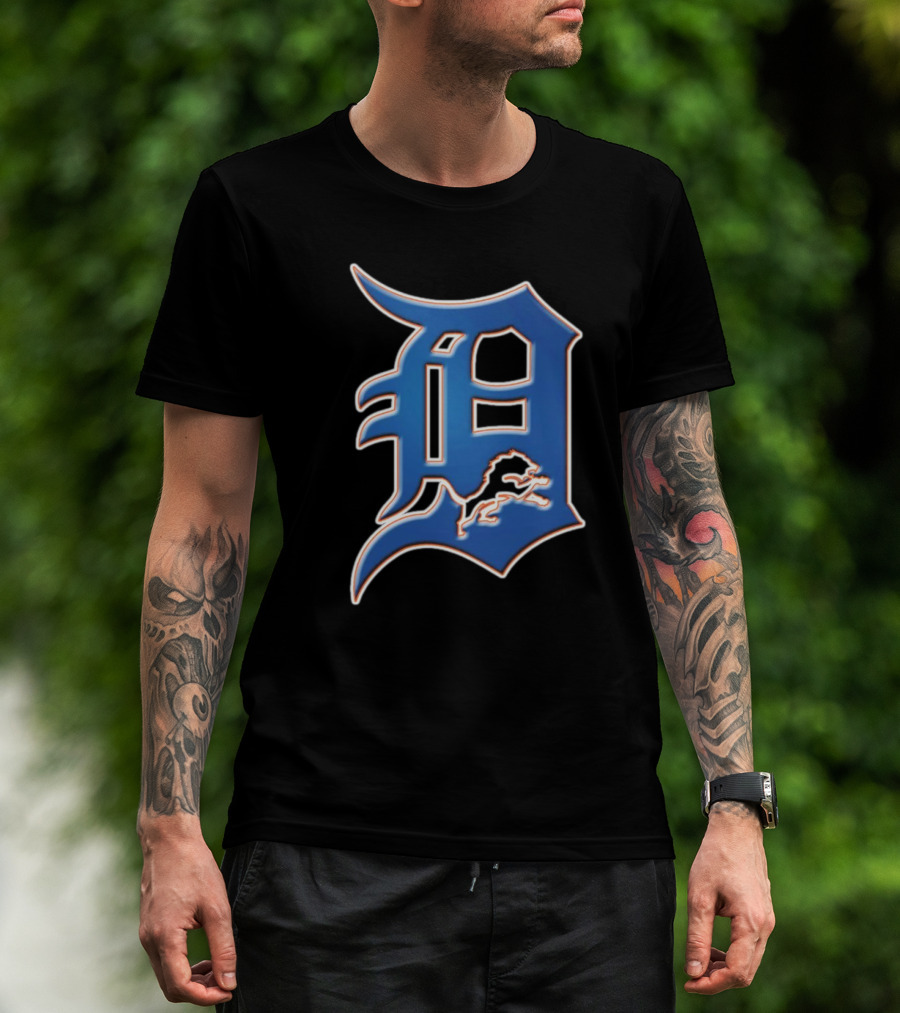 The Detroit Lions Tigers Logo Mashup NFL MLB Blue D T-shirt is designed for everyday wear and a consistent fit. Fabric is pre-shrunk ring-spun cotton with durable stitching. See the size chart below for exact measurements.