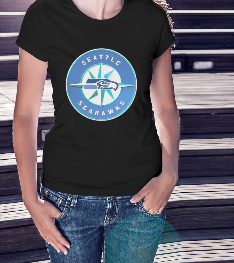 Seattle Seahawks X Mariners Logo Mashup NFL MLB Crossover T-Shirt