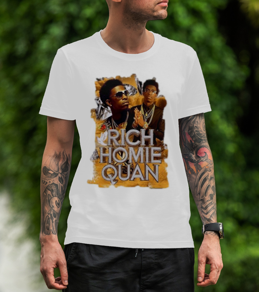 The Rich Homie Quan Vintage Style Graphic Collage T-shirt is designed for everyday wear and a consistent fit. Fabric is pre-shrunk ring-spun cotton with durable stitching. See the size chart below for exact measurements.