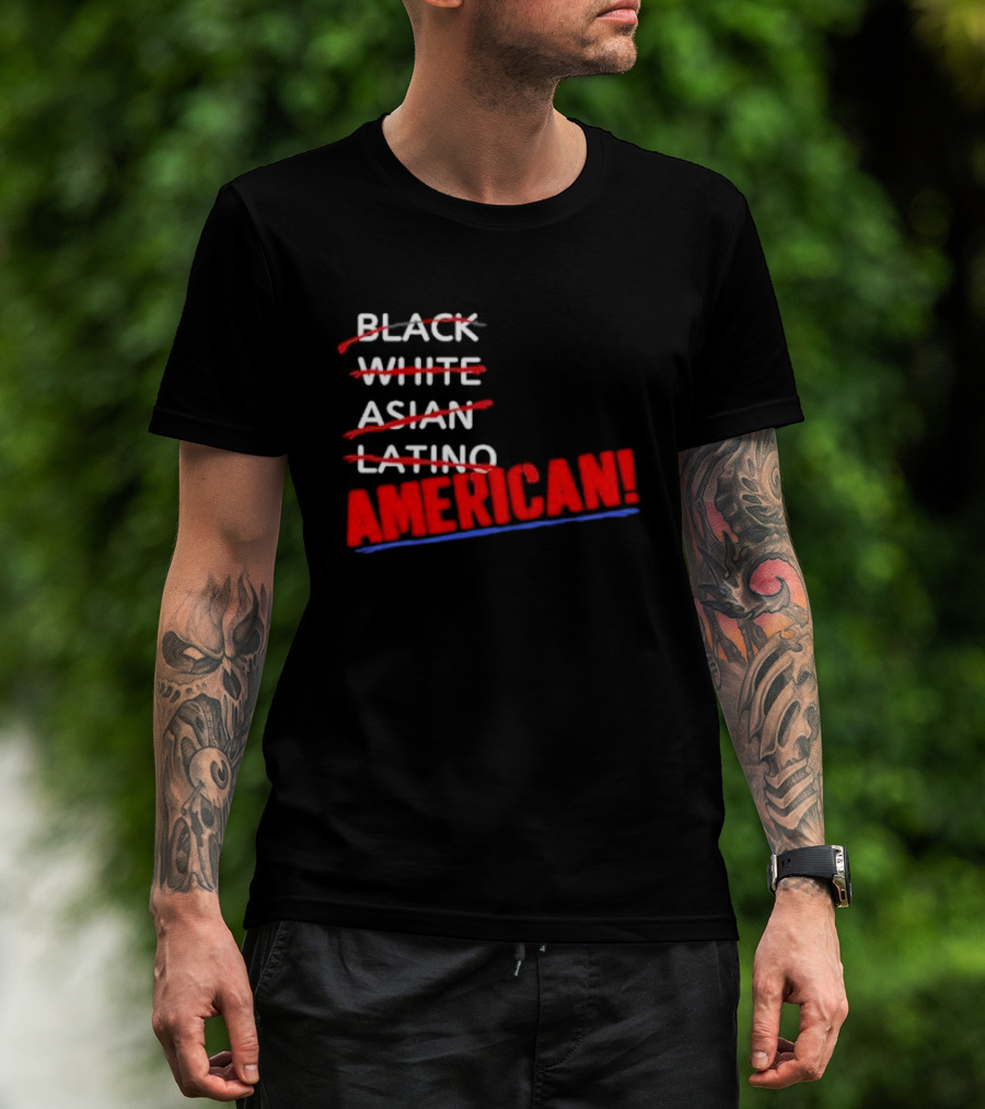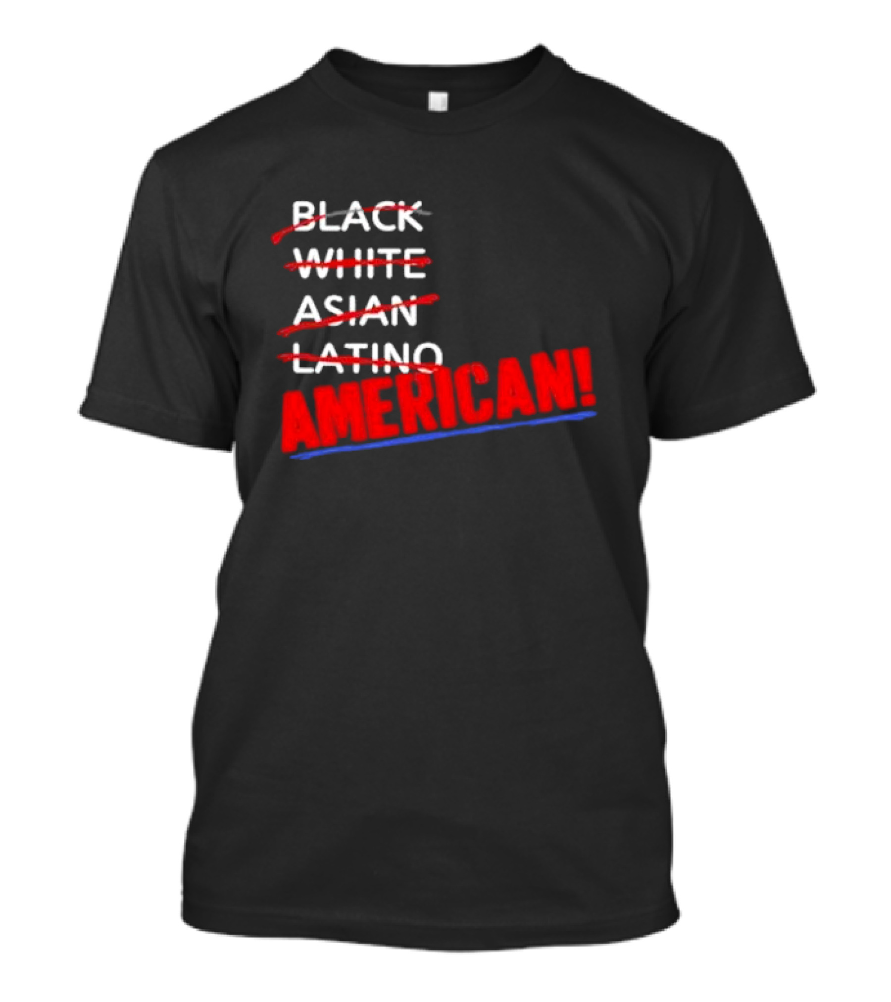 Joy Villa Lifsey Black White Asian Latino Strikethrough American Text T-Shirt