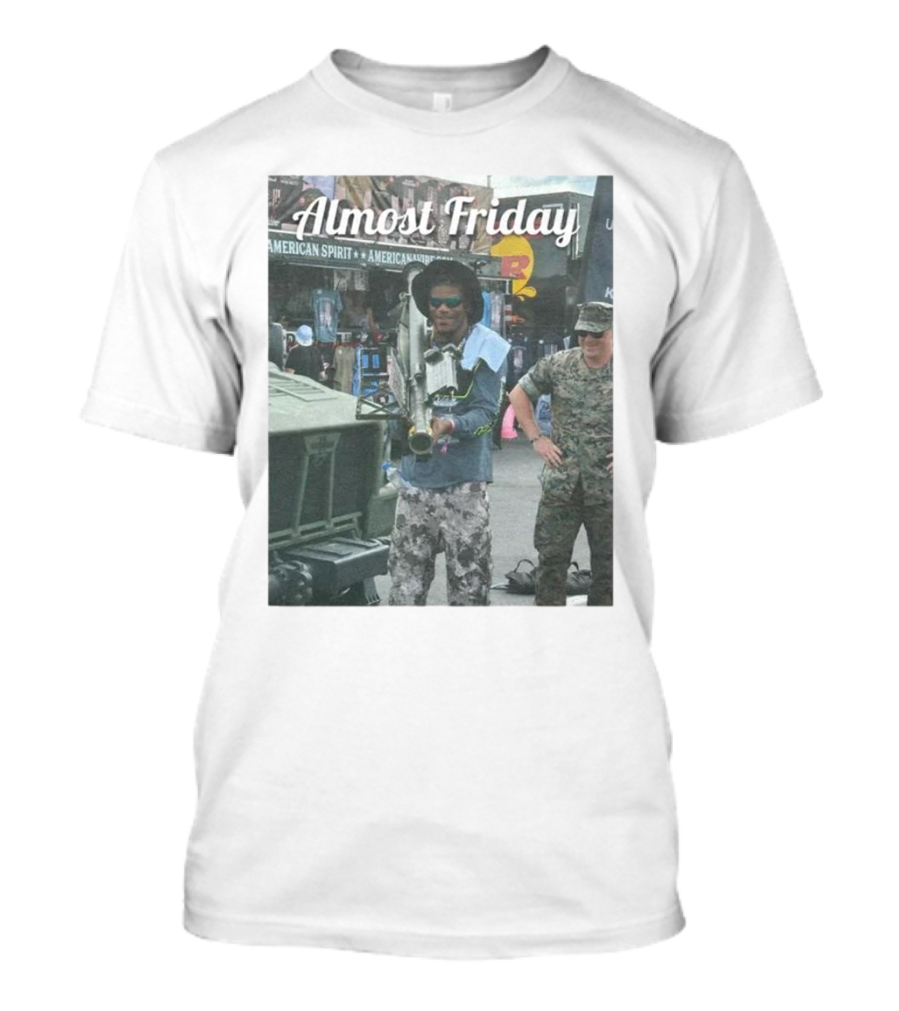 Almost Friday Military Style Rocket Launcher Urban Scene T-Shirt