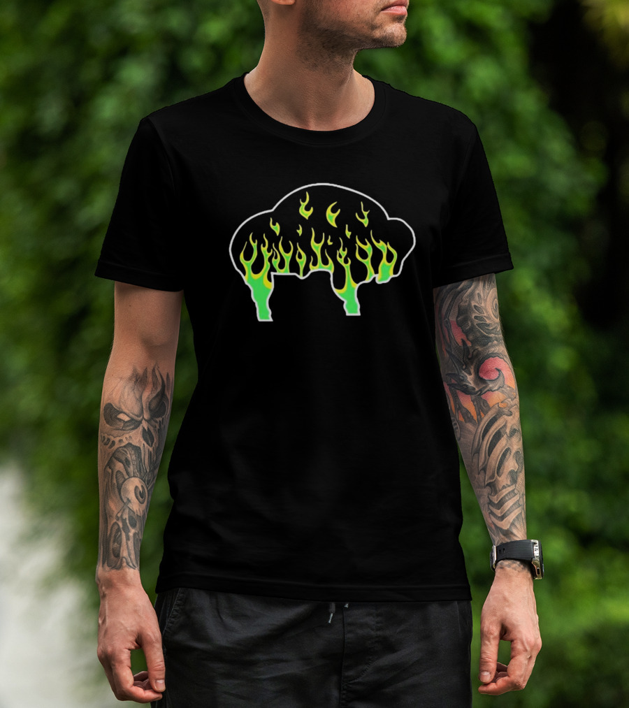Buffalo Flames Green Yellow Fire T-Shirt