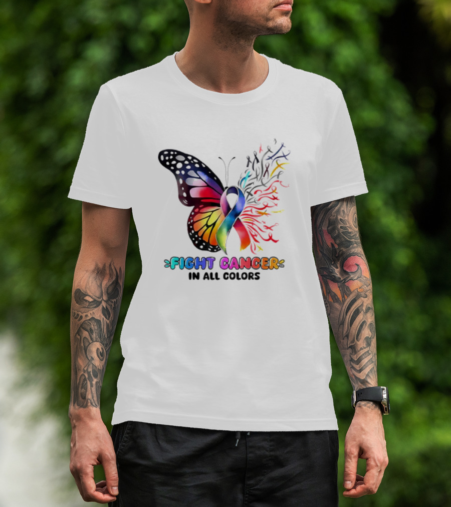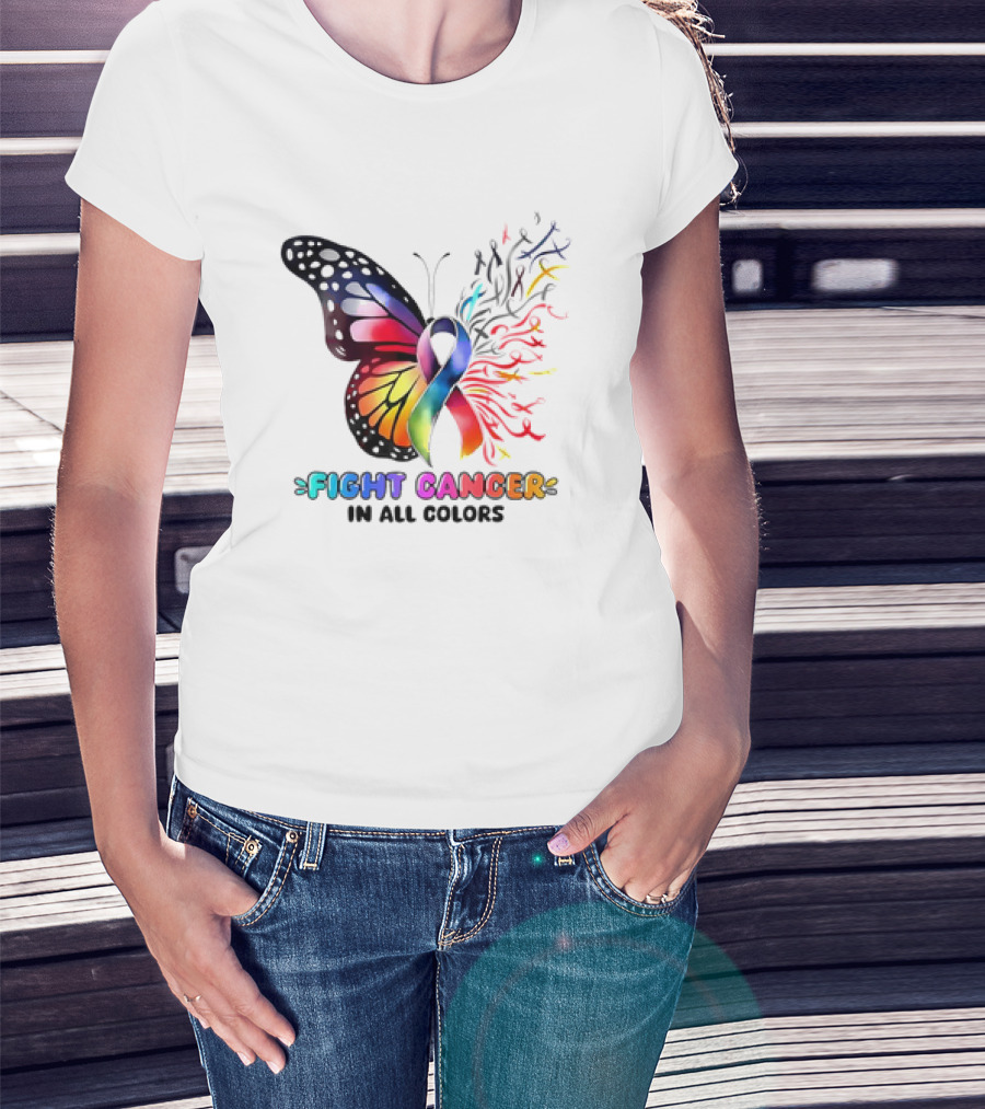 Fight Cancer In All Colors Butterfly Ribbon Support Awareness T-Shirt