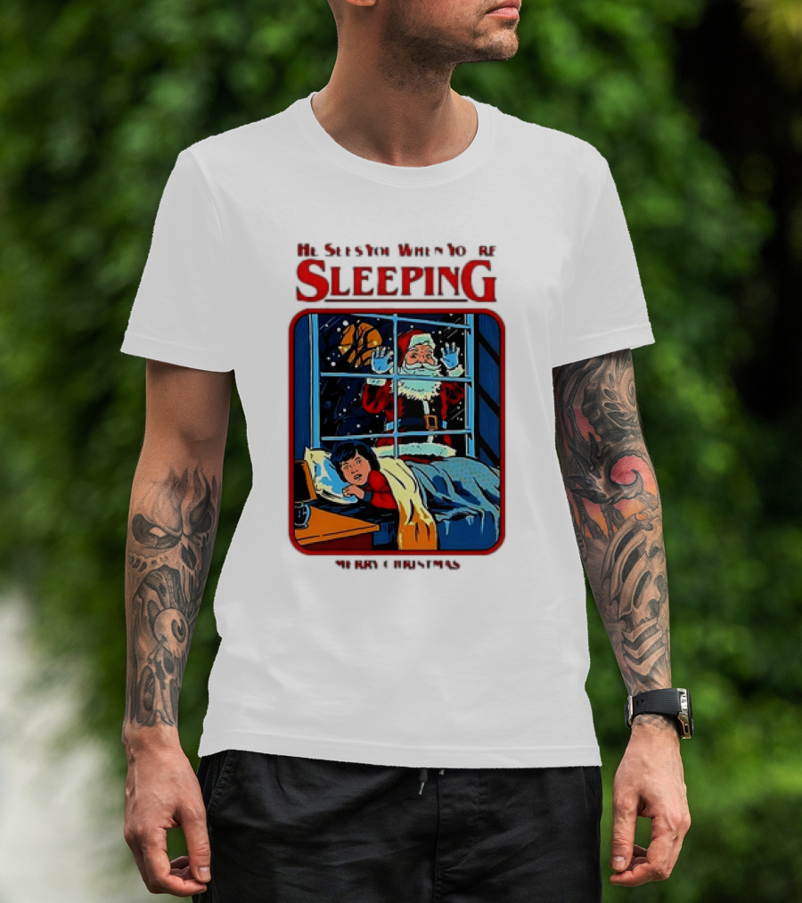 He Sees You When You’re Sleeping Santa Claus Merry Christmas T-Shirt