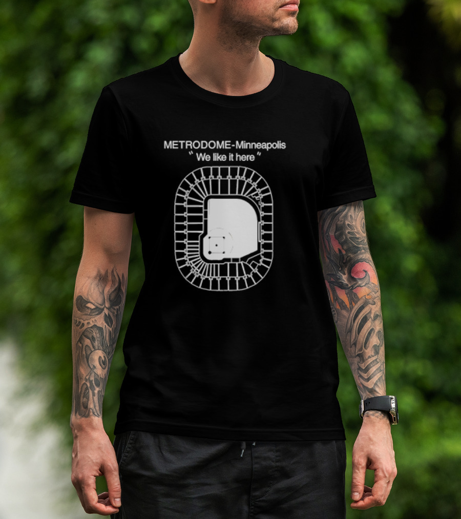 Metrodome Minneapolis We Like It Here Stadium Blueprint T-Shirt