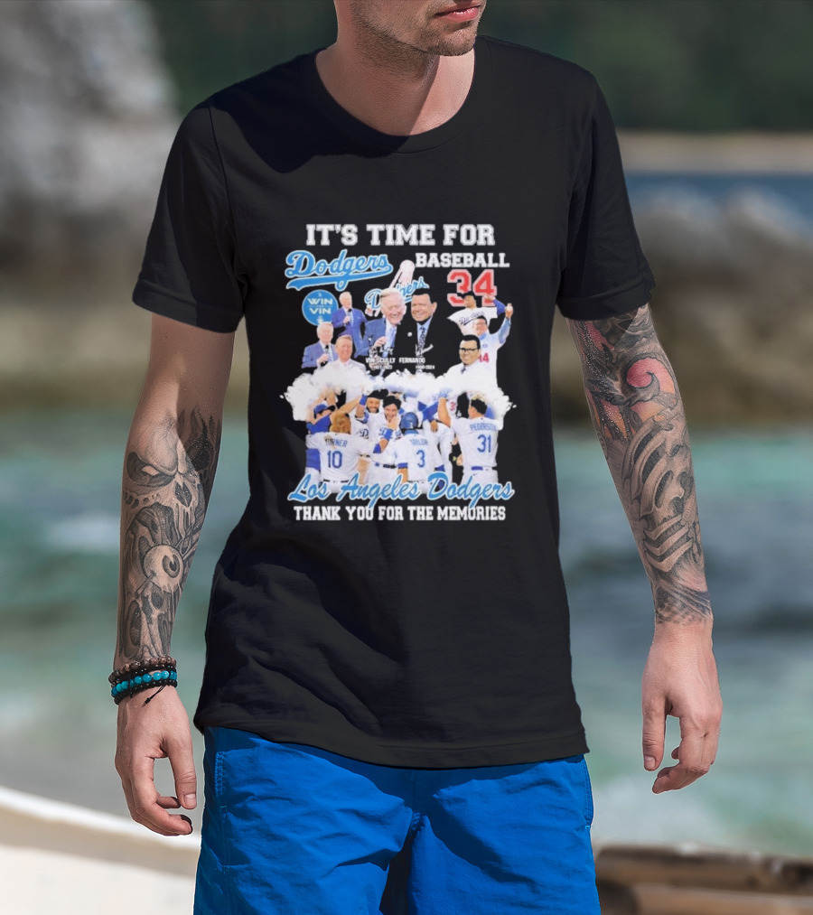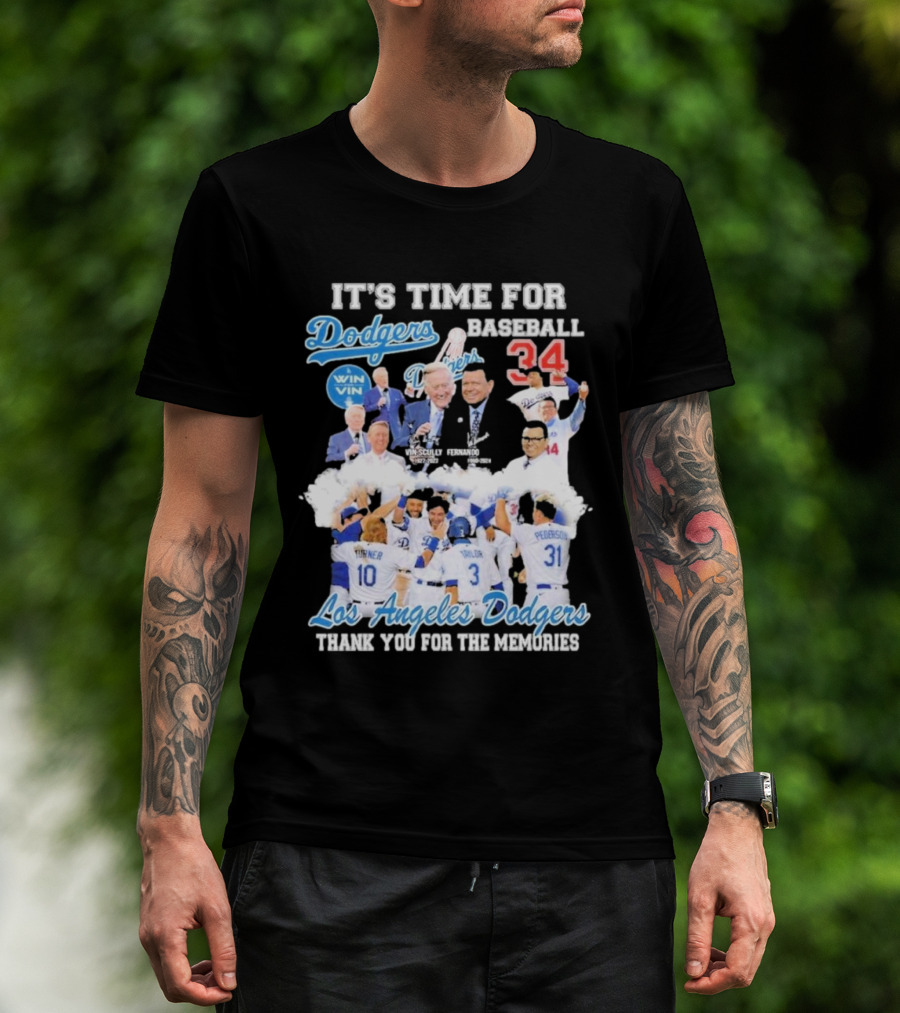 IT'S TIME FOR BASEBALL LOS ANGELES DODGERS VIN SCULLY FERNANDO VALENZUELA 34 THANK YOU FOR THE MEMORIES T-Shirt