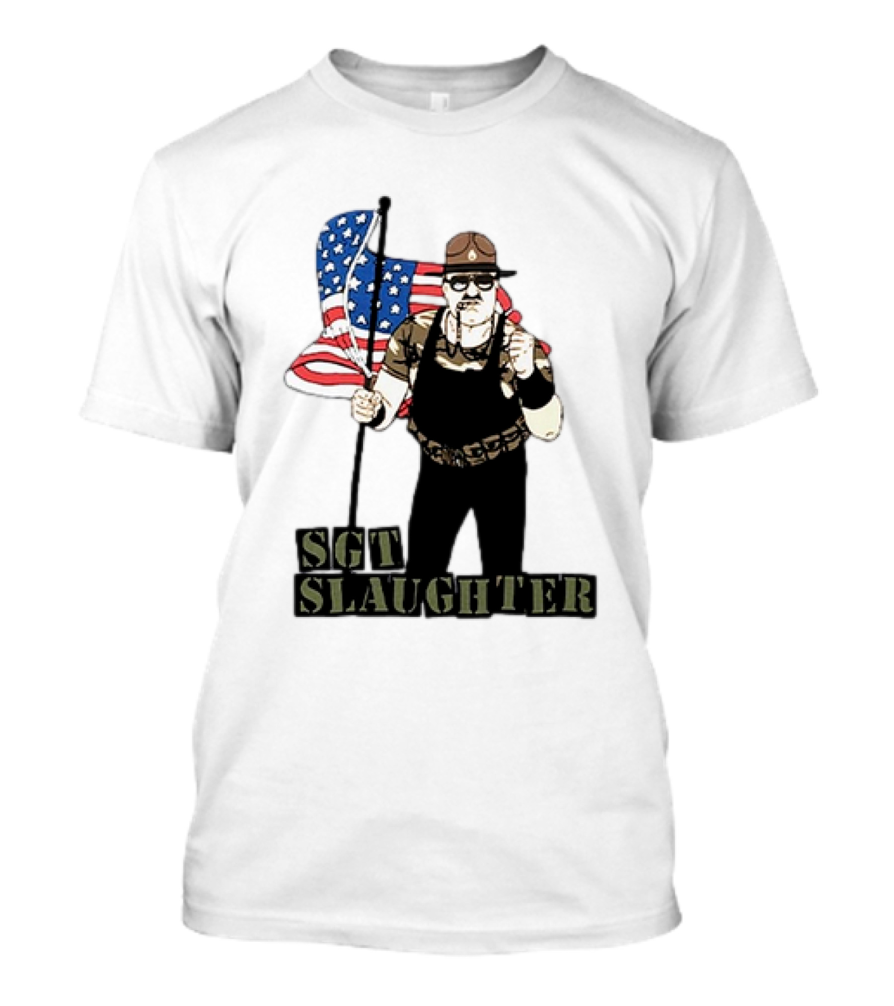 SGT Slaughter Holding American Flag Iconic Wrestling Figure T-Shirt