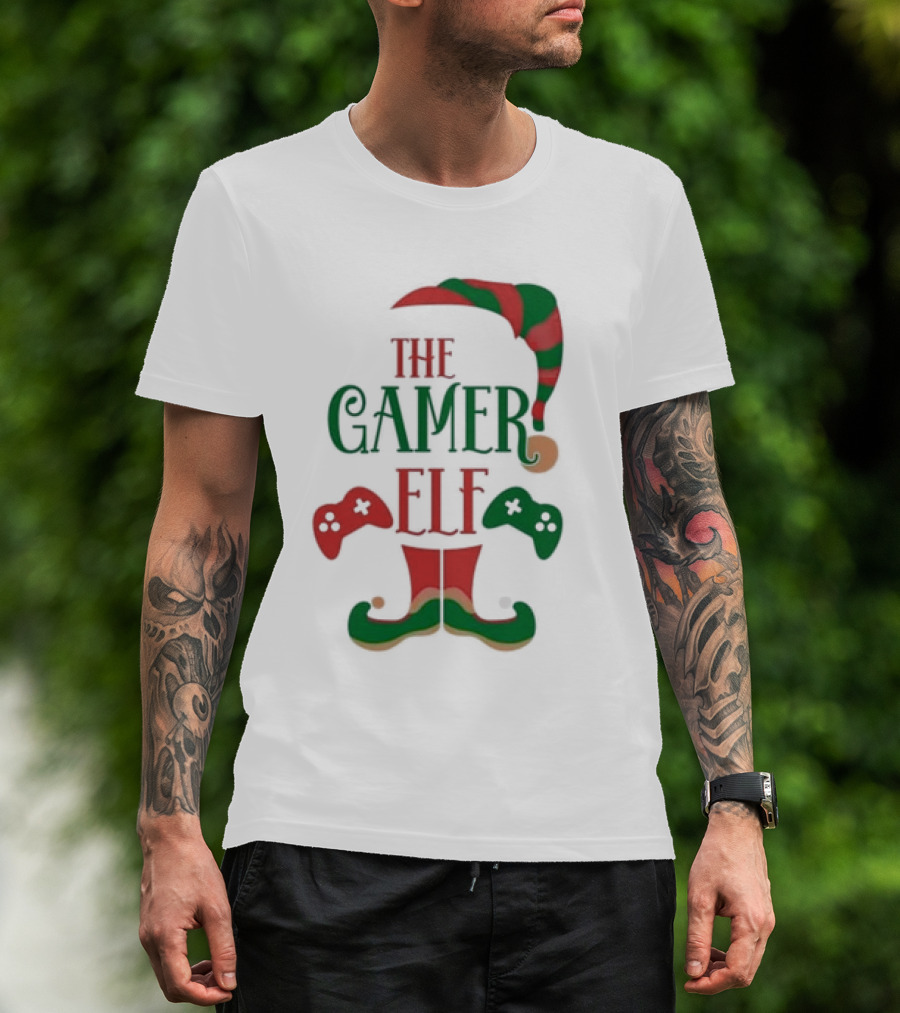 The Gamer Elf With Christmas Hat And Controllers T-Shirt