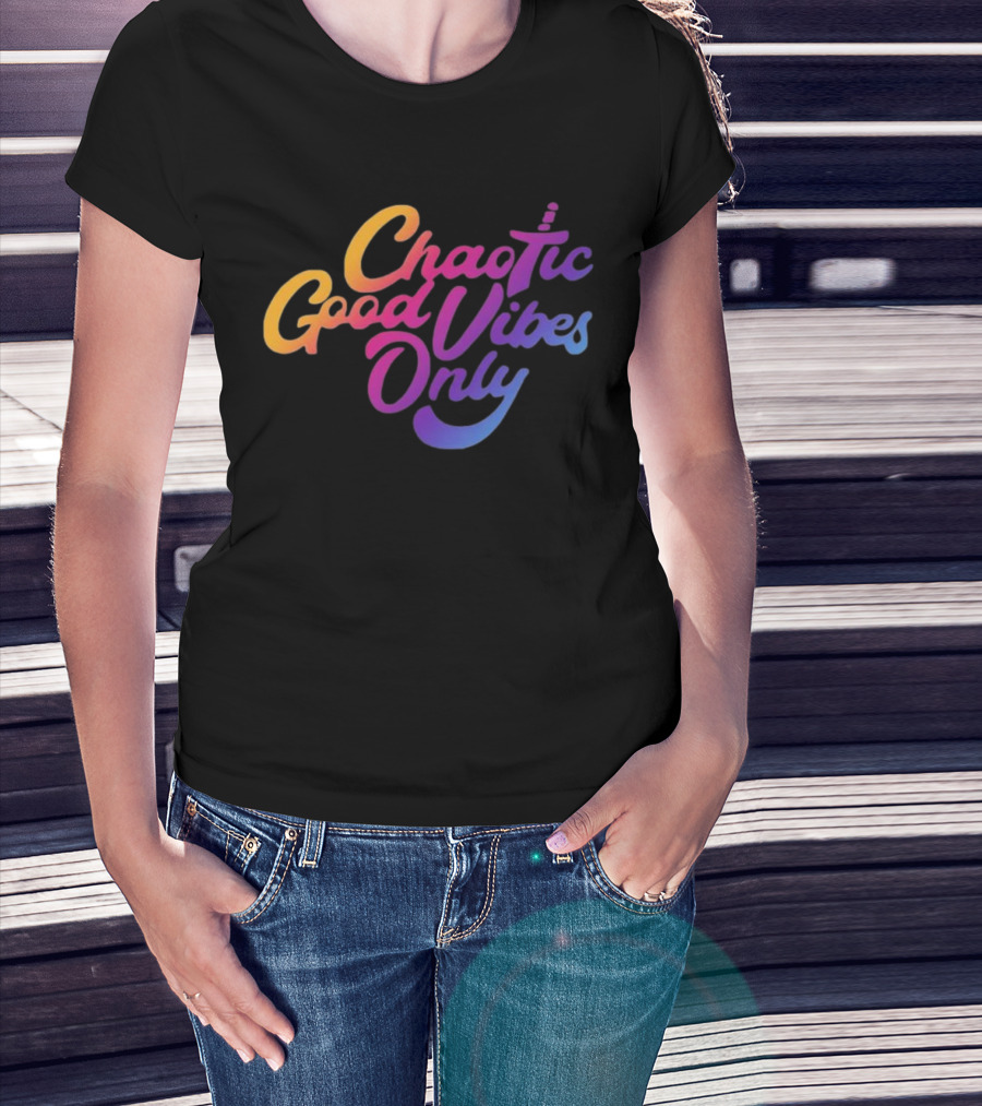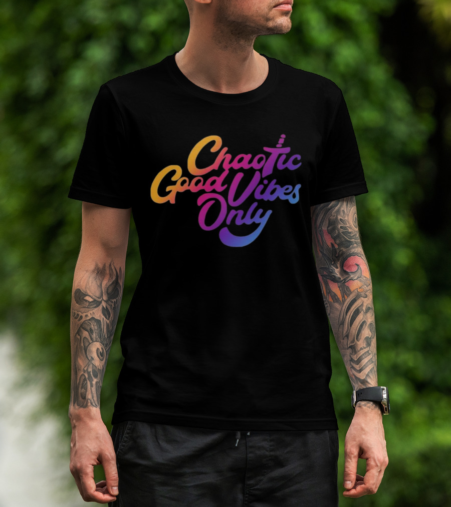 Chaotic Good Vibes Only Sword Icon Gradient Text T-Shirt