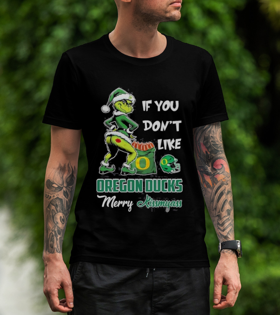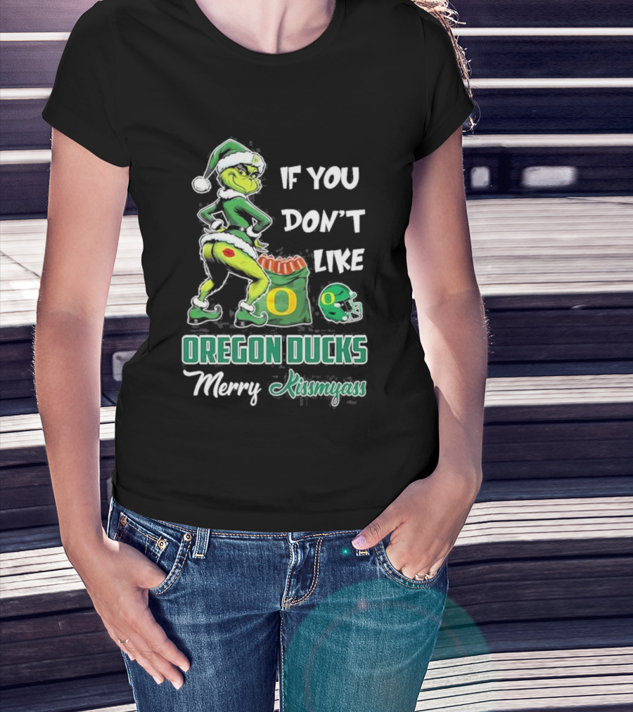 If You Don’t Like Oregon Ducks Merry Kissmyass Grinch Santa Football T-Shirt