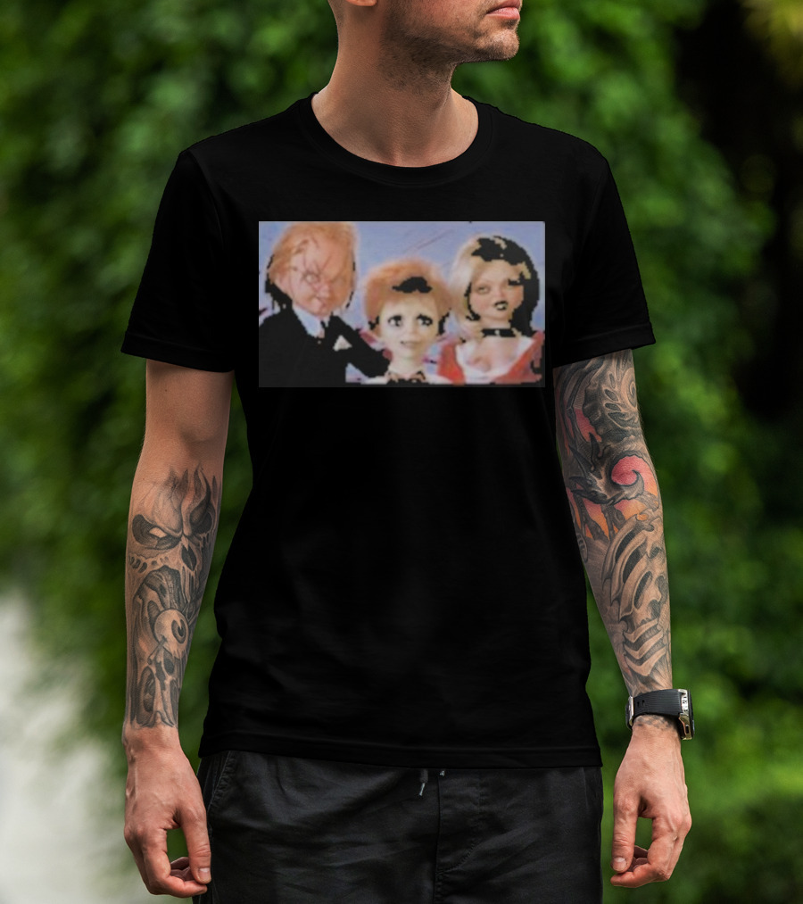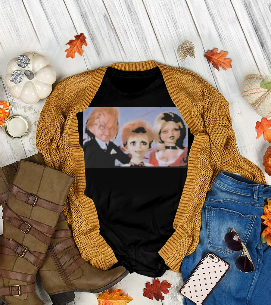 Chucky And Family Horror Characters In Distorted Family T-Shirt