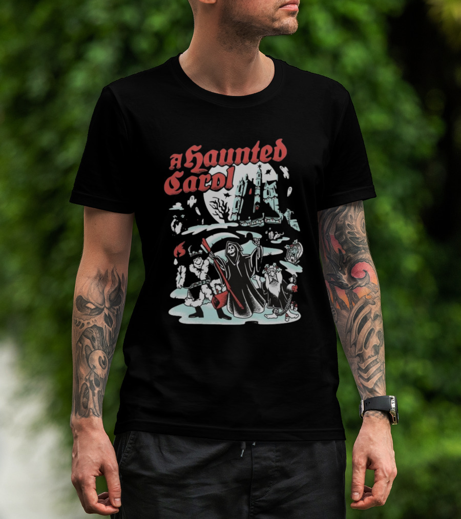 A Haunted Carol Ghostly Christmas Adventure With Skeletons And Snowy Graveyard T-Shirt