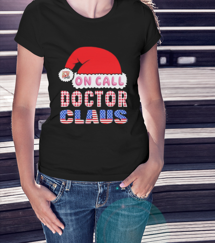 Doctor Claus On Call Christmas Santa Hat American Flag T-Shirt