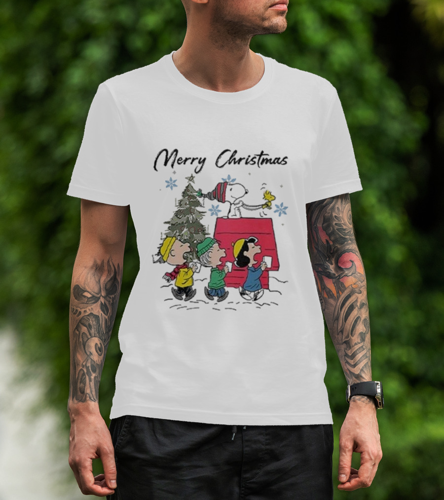 The Merry Christmas Snoopy and Friends Winter Scene T-shirt is designed for everyday wear and a consistent fit. Fabric is pre-shrunk ring-spun cotton with durable stitching. See the size chart below for exact measurements.