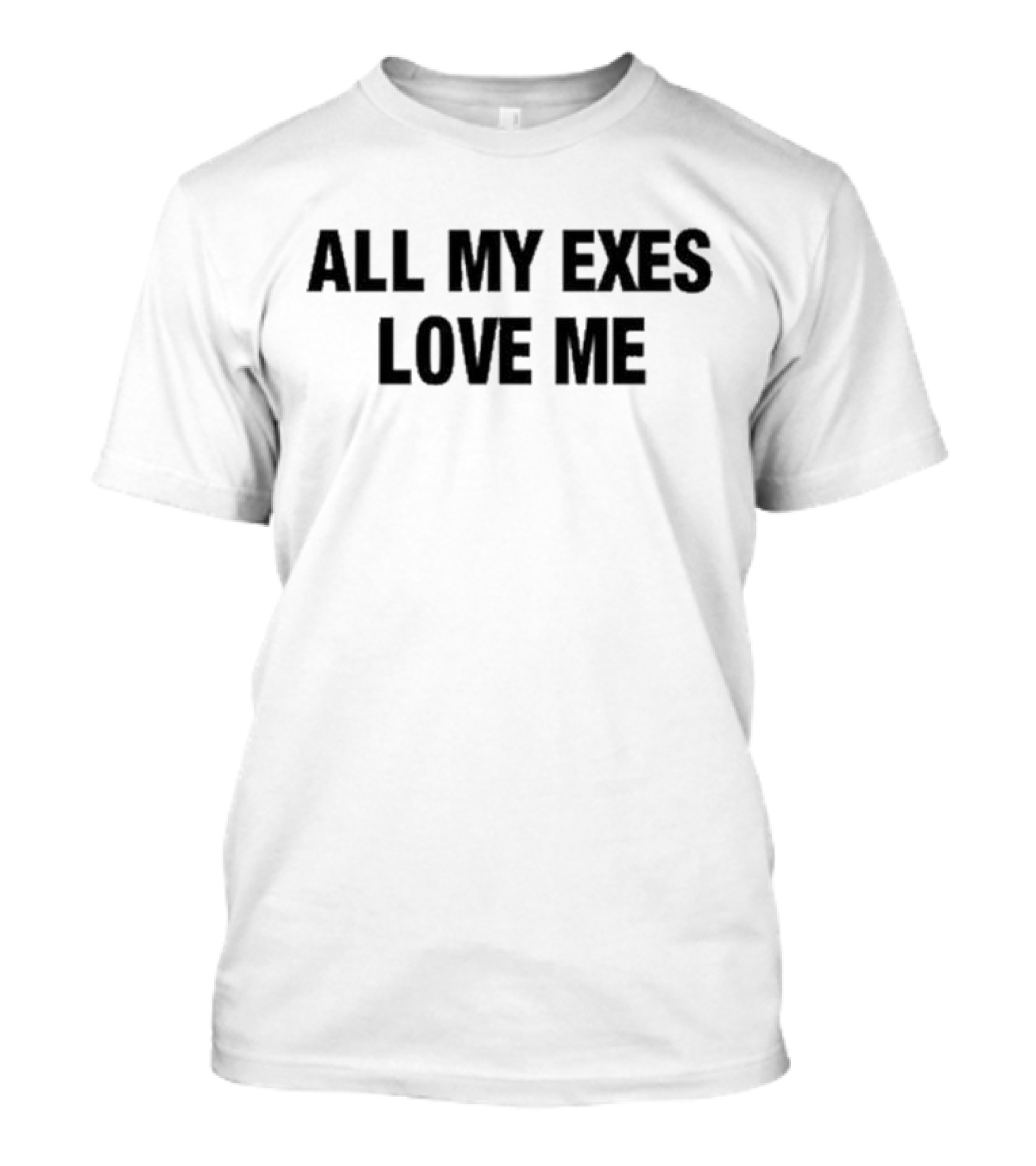 The ALL MY EXES LOVE ME T-shirt is designed for everyday wear and a consistent fit. Fabric is pre-shrunk ring-spun cotton with durable stitching. See the size chart below for exact measurements.