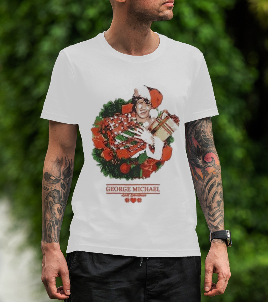 GEORGE MICHAEL LAST CHRISTMAS SANTA HAT WREATH T-Shirt