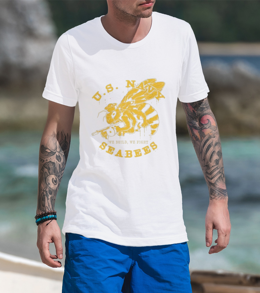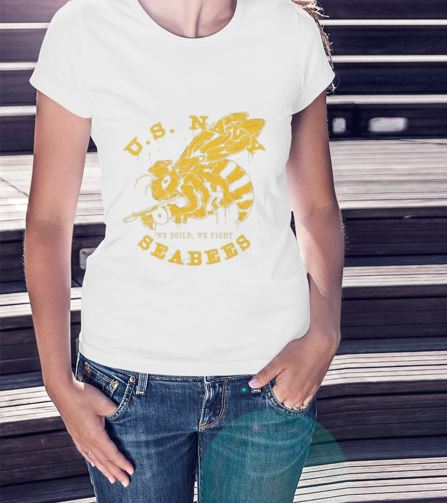U.S. Navy Seabees We Build We Fight Vintage Bee With Tool T-Shirt