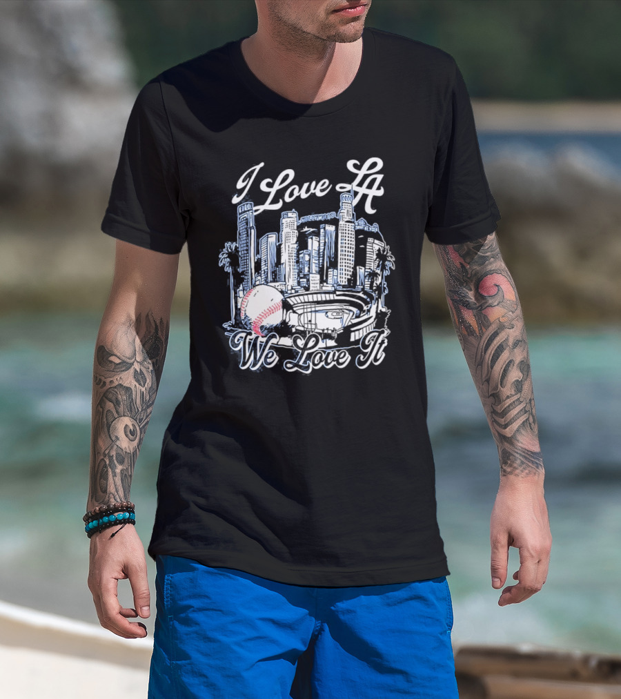 I Love LA Dodgers We Love It Los Angeles Skyline Baseball Stadium T-Shirt