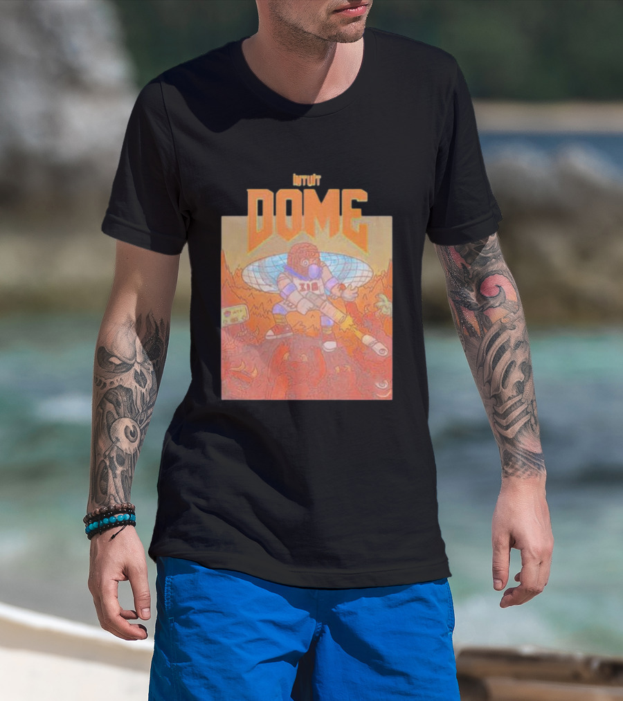 The Intuit Dome Futuristic Mascot with Basketball Energy Disc T-shirt is designed for everyday wear and a consistent fit. Fabric is pre-shrunk ring-spun cotton with durable stitching. See the size chart below for exact measurements.