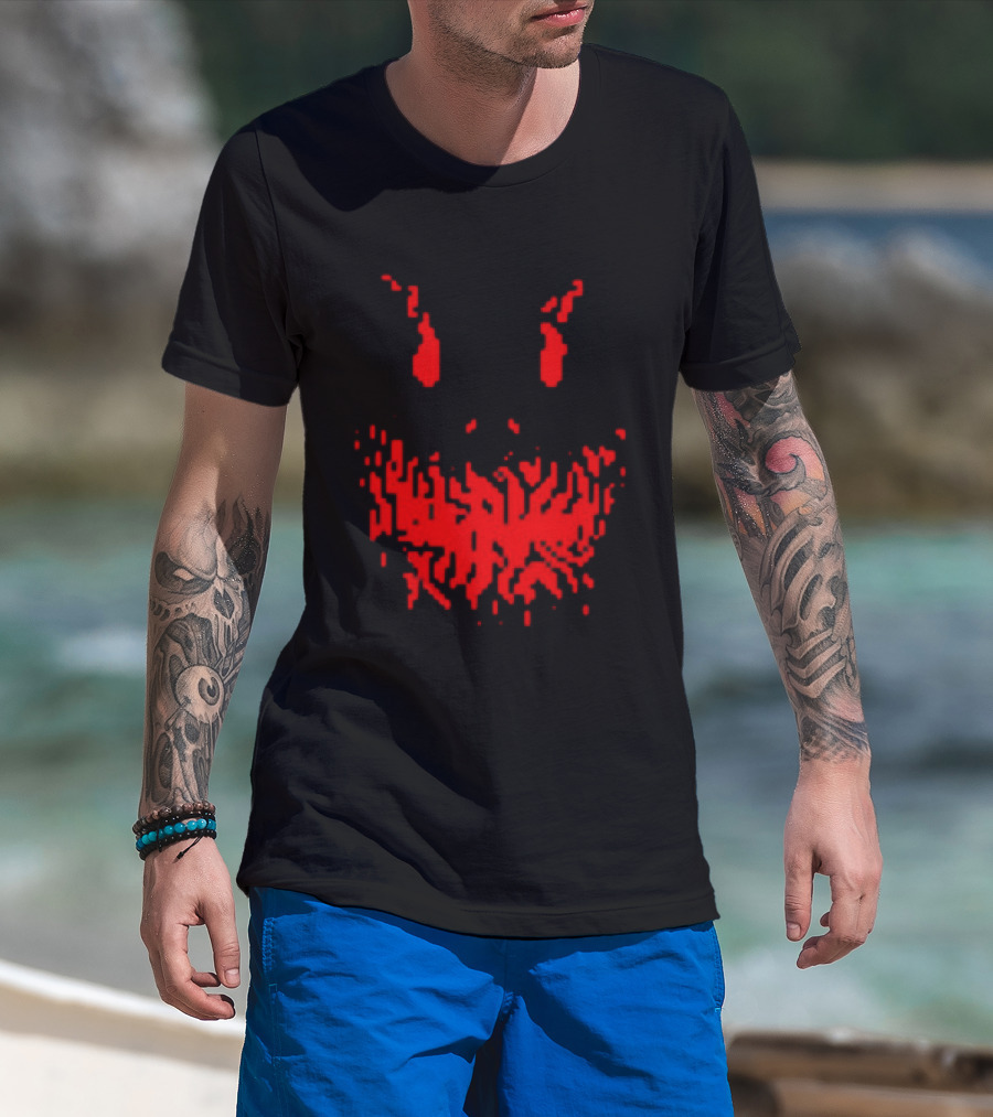 The Scary Red Pixelated Joker Face T-shirt is designed for everyday wear and a consistent fit. Fabric is pre-shrunk ring-spun cotton with durable stitching. See the size chart below for exact measurements.