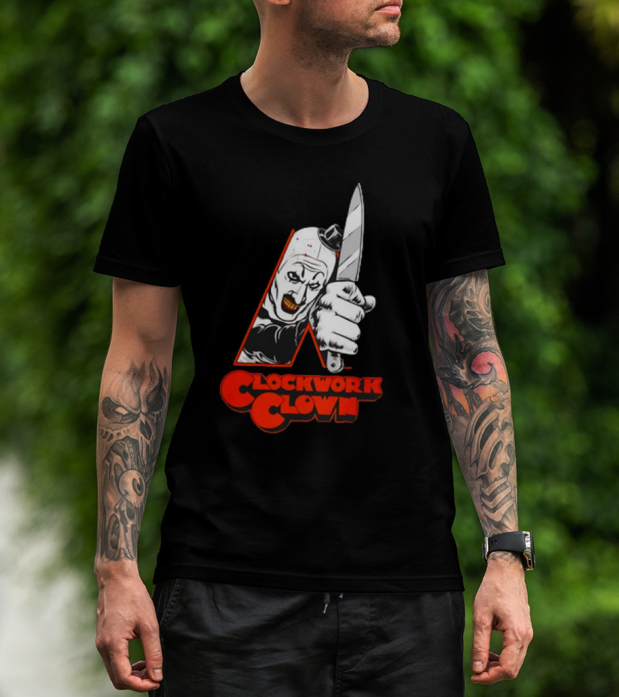 The A Clockwork Clown Art the Clown the Terrifier Movies T-shirt is designed for everyday wear and a consistent fit. Fabric is pre-shrunk ring-spun cotton with durable stitching. See the size chart below for exact measurements.