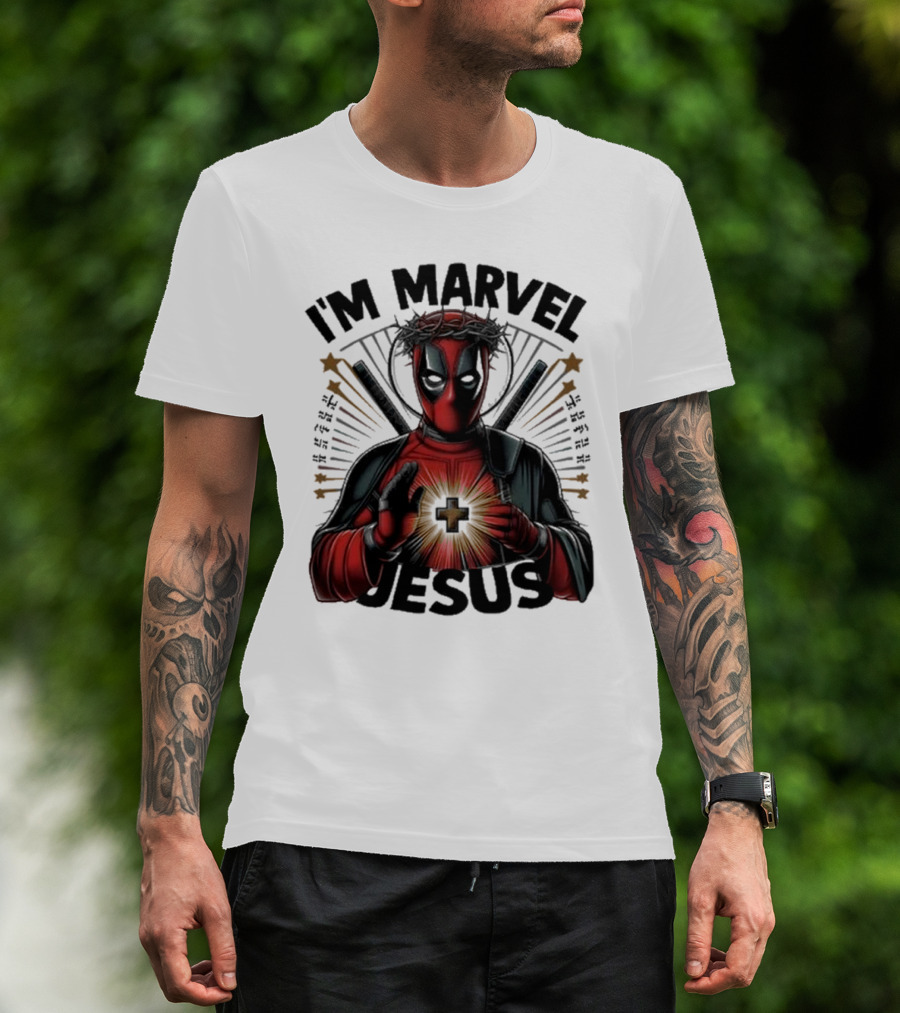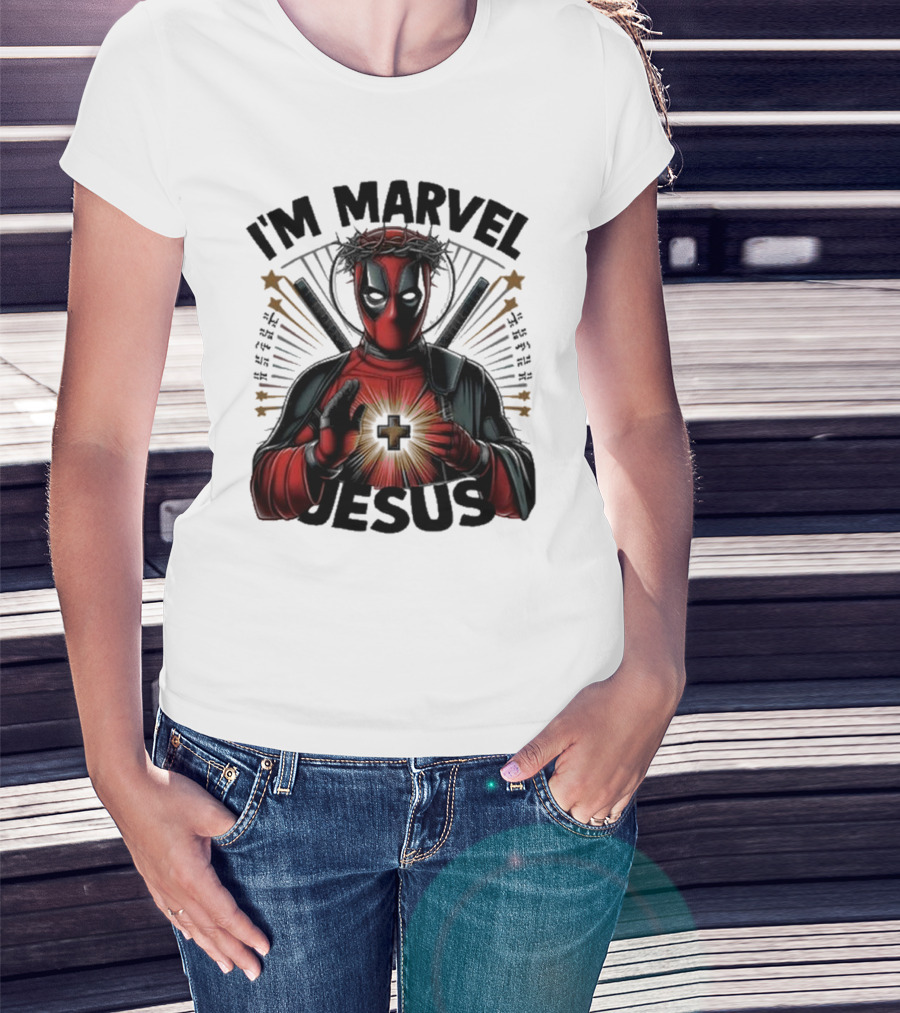 I'm Marvel Jesus Deadpool With Cross Halo And Swords T-Shirt